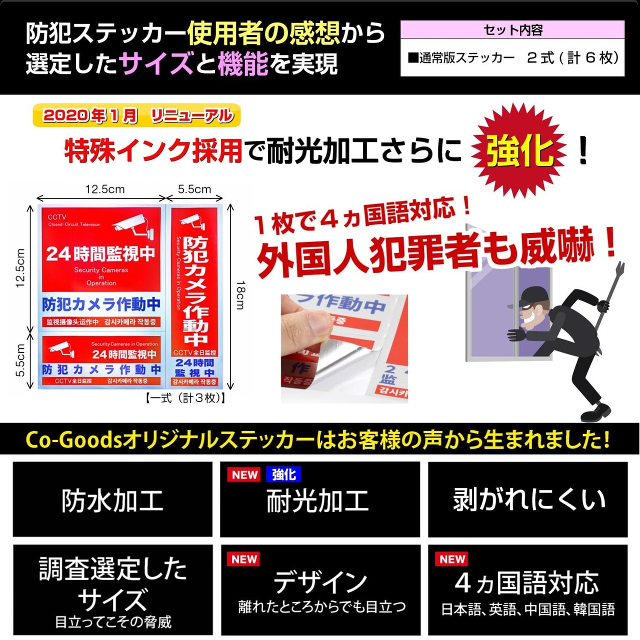 シリーズ累計販売数15万枚以上の実績 [企業・個人事業主様にもご愛用頂いております] 【貼り間違えても安心】防犯ステッカーは粘着力が強いので貼り直しができません。でも・・・当セットは「3タイプ×2式= 全6枚セット」なので安心! 【 当製品は「岡山県メーカー Co-Goods」オリジナル商品です】似よりの商品が多いのでご注意ください。他社製品とは品質・フォローに大きな違いがございます。