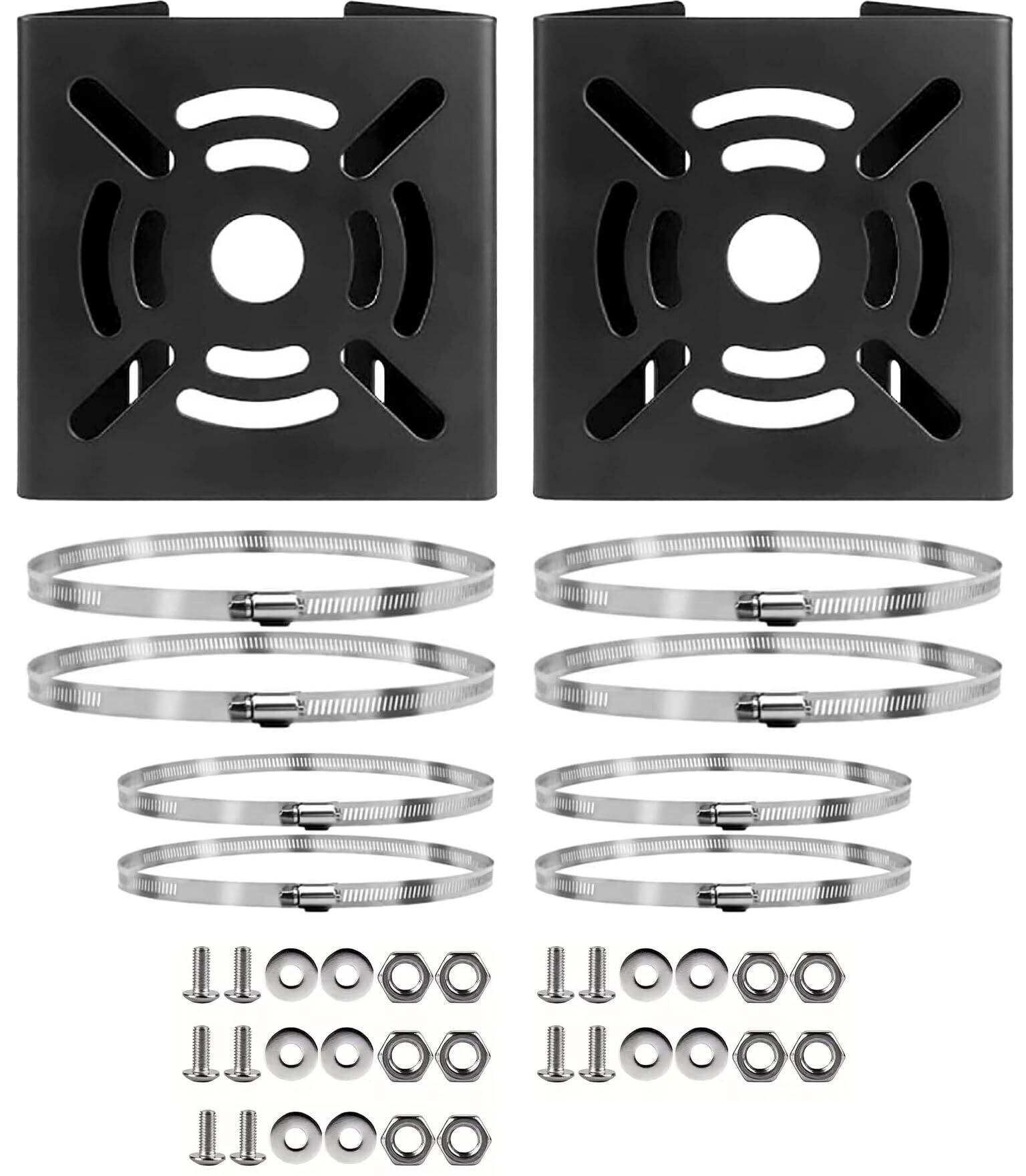 【パッケージ内容】以下2セット分。サイズ:約115×110×51㎜ ブラケット黒 2個 ステンレスバンド8本(大小各4本)小 φ 100mm 大 φ 200mm ネジセット 10セット 屋外での使用にも耐久性のある取付金具です。