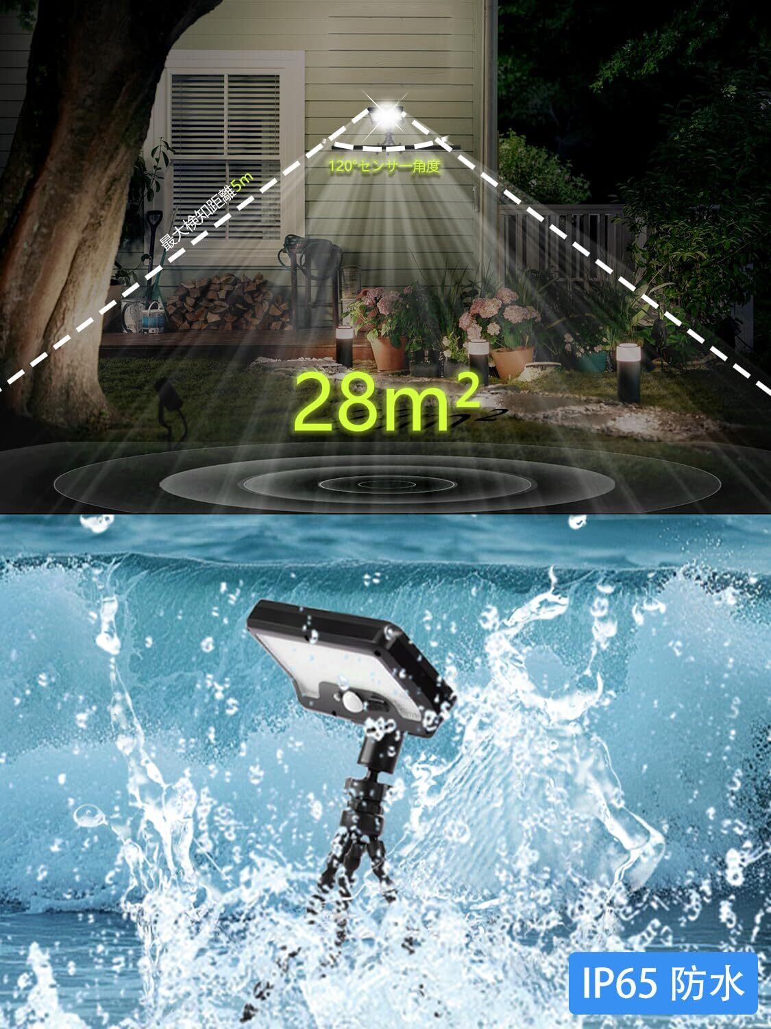 ■【IP65防水性能で安心の耐久性!】IP65の防水設計で、悪天候や雨の日でも安心して使用できます。耐久性のある作りで、ガーデンやバルコニーなど屋外利用に最適です。