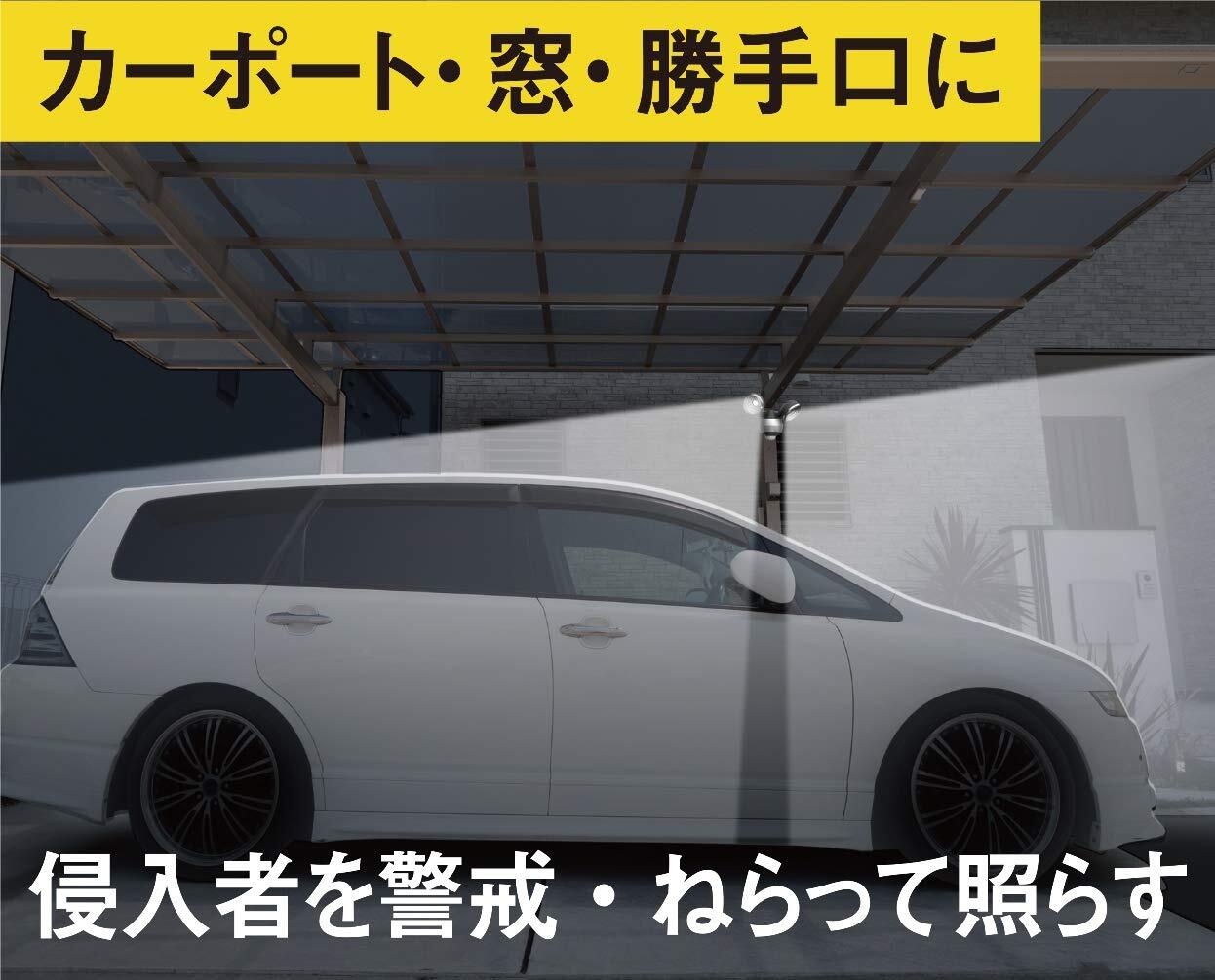 ■【2灯式で広範囲をカバー!】2灯構造を採用しており、広範囲を明るく照らします。設置場所に応じて角度調整ができるため、最適な照明が可能です。駐車場や庭などの防犯灯としてだけでなく、作業用の明かりとしても重宝します。