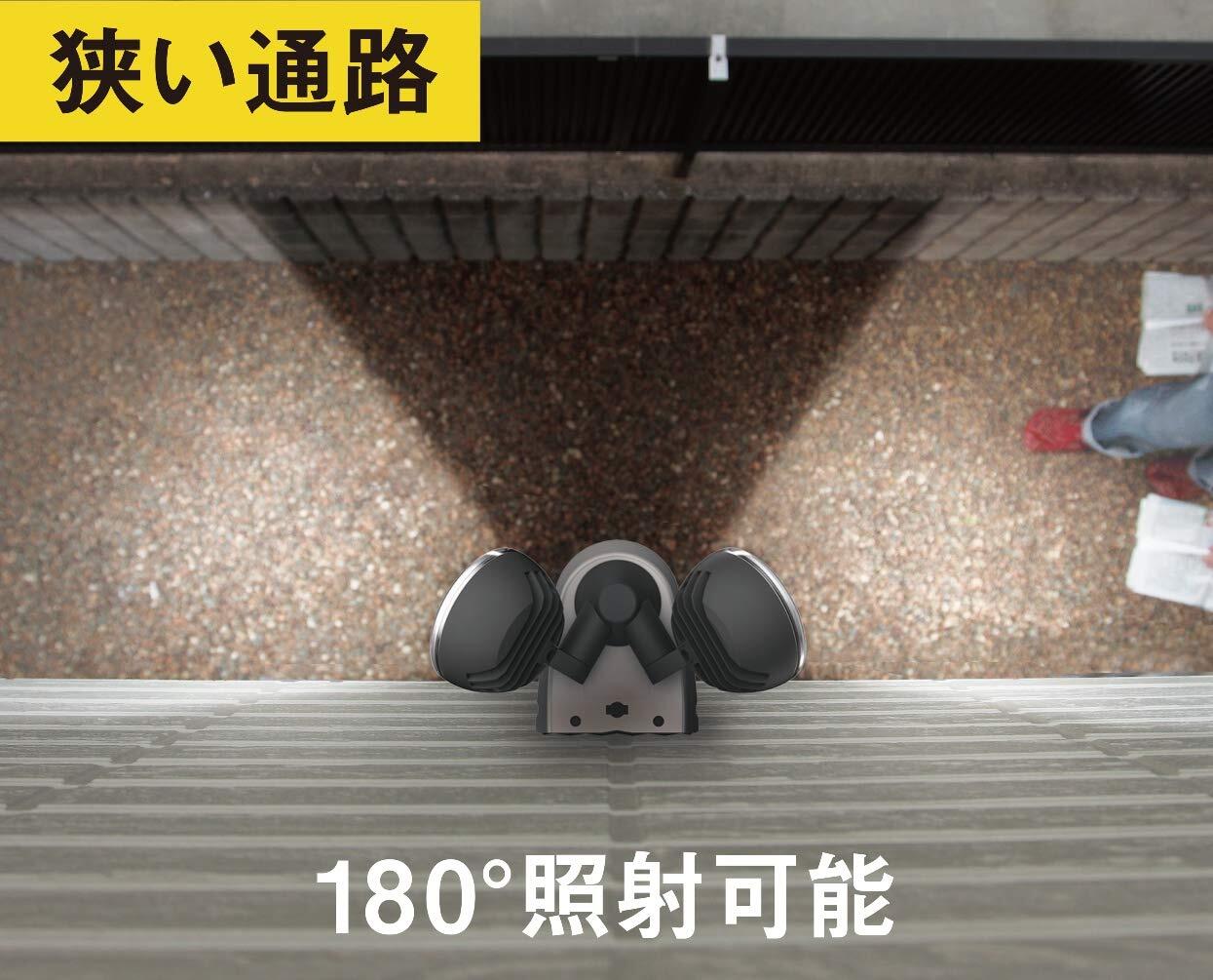 広範囲を照らすので、防犯対策におすすめ。180°照射可能