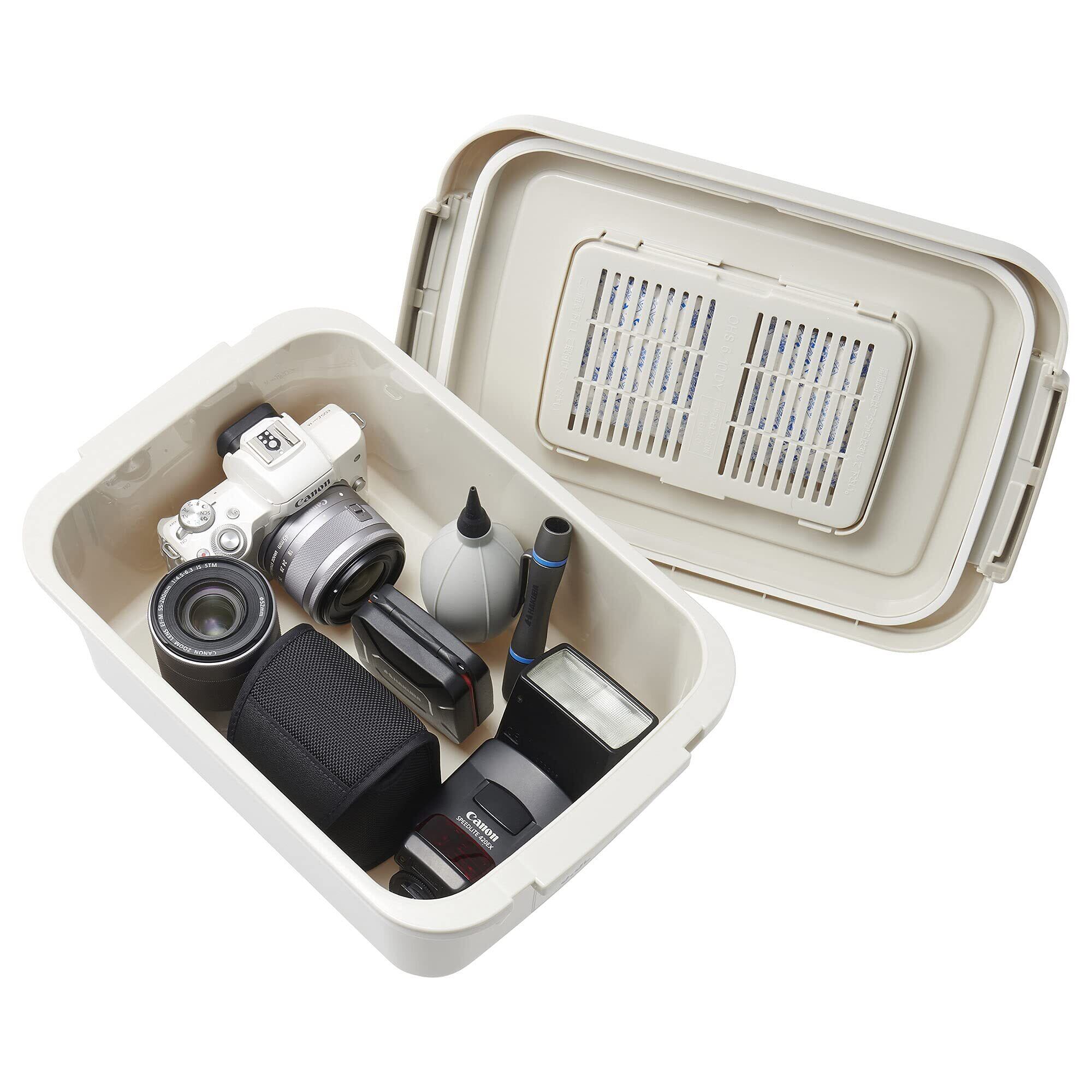 ミラーレスカメラの収納に丁度よい容量5.5リットルのコンパクトサイズ。 乾燥剤「キングドライ(15g×2入)」付属。