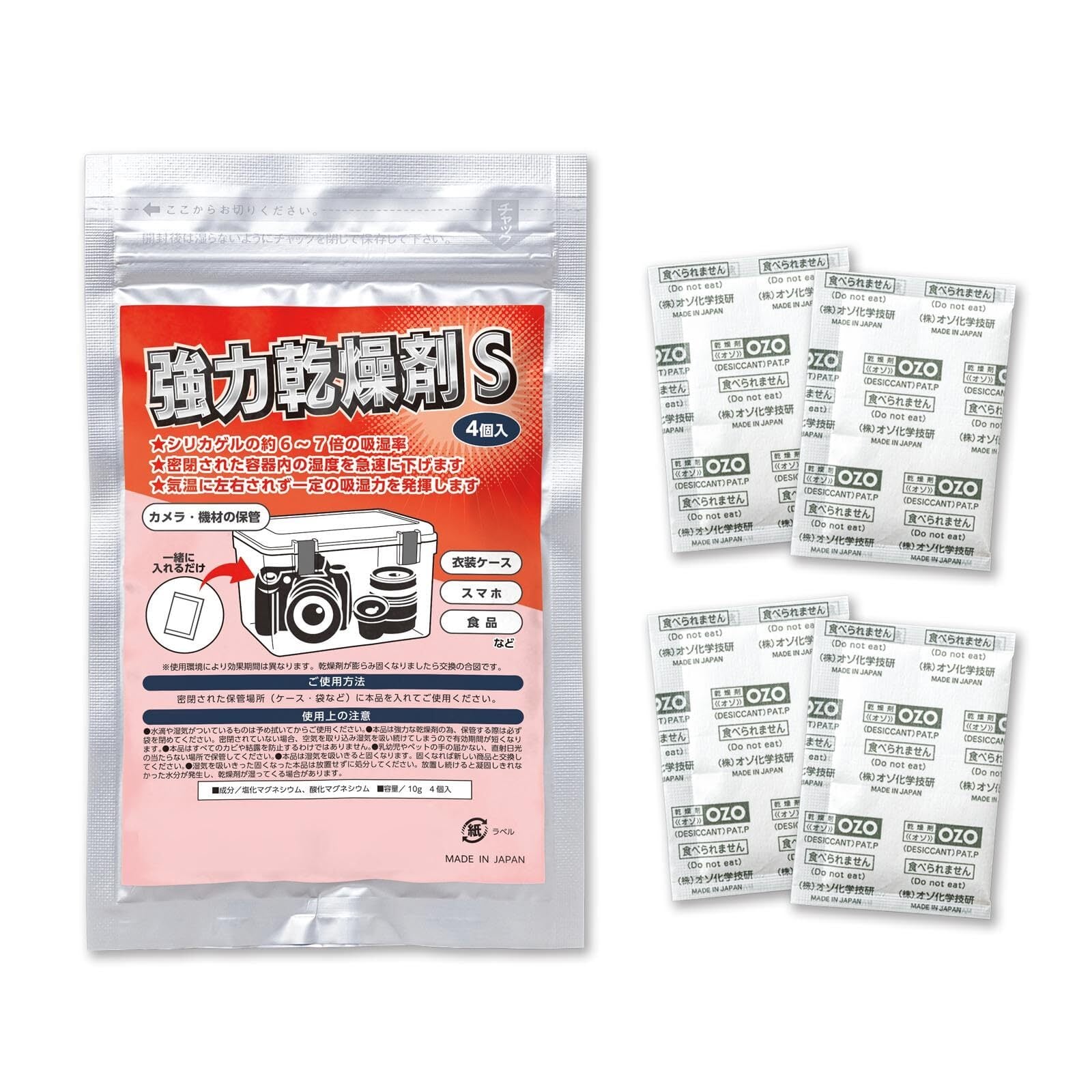 コモライフ 強力乾燥剤S(4個入)オゾ 乾燥剤 OZO 超即効 吸湿 脱臭 カメラ 機材 スマホ 衣装ケース 日本製