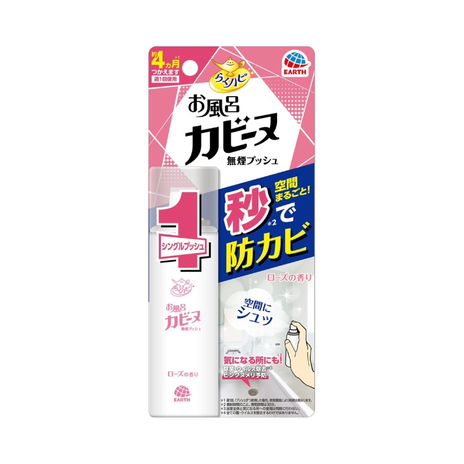 【2025最新】らくハピ お風呂カビーヌ無煙プッシュ 空間まるごと秒で防カビ [ローズの香り 4ヵ月分] 浴槽 浴室 カビを防ぐ (アース製薬)