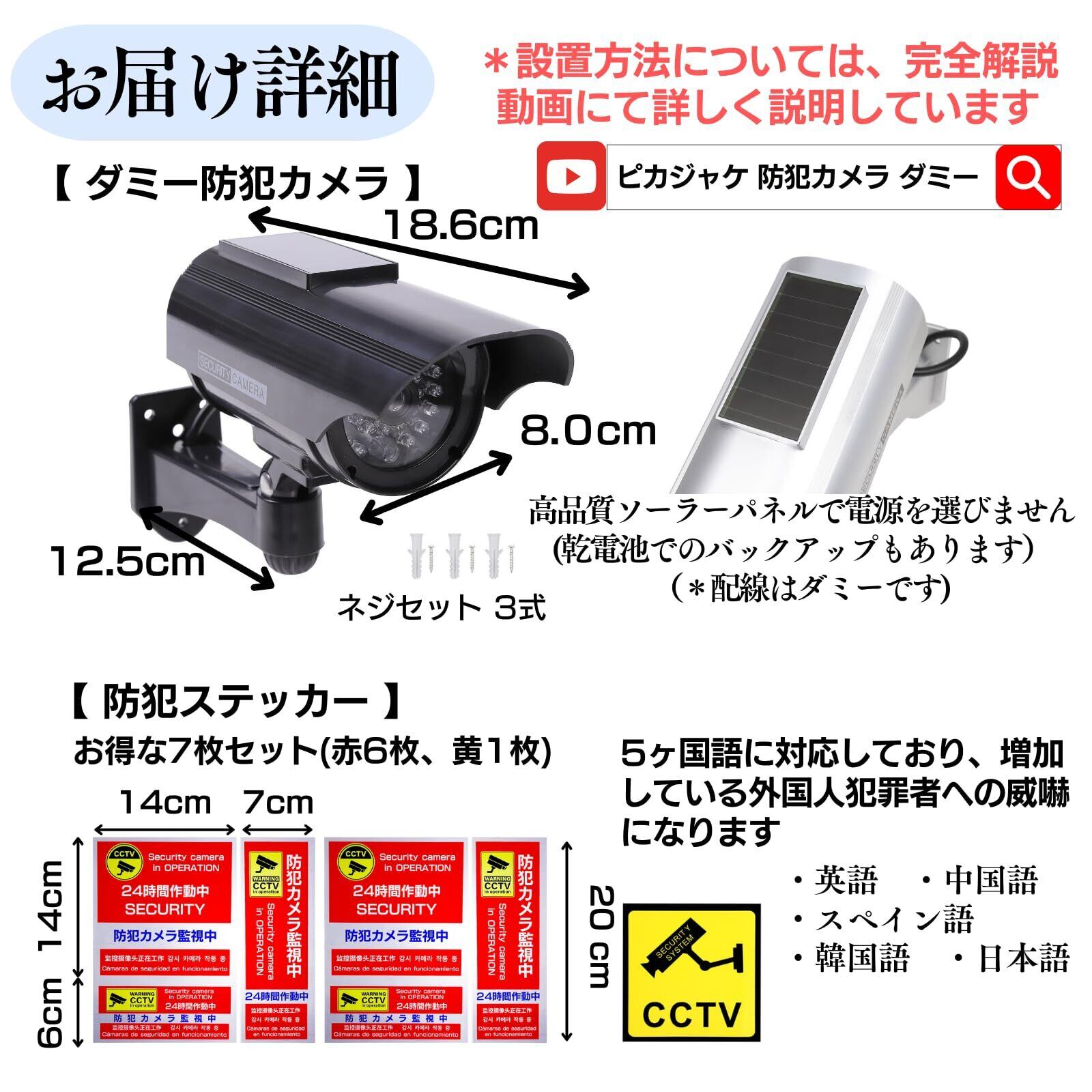 【新着商品】【TVタックルで紹介されました】 防犯カメラ ダミー 【防犯設備士監修】ソーラー LED 5ヶ国語対応 防犯ステッカー 防水 ダミーカメラ 監視カメラ 【防犯ブランド ピカジャケ】 (ブラック)