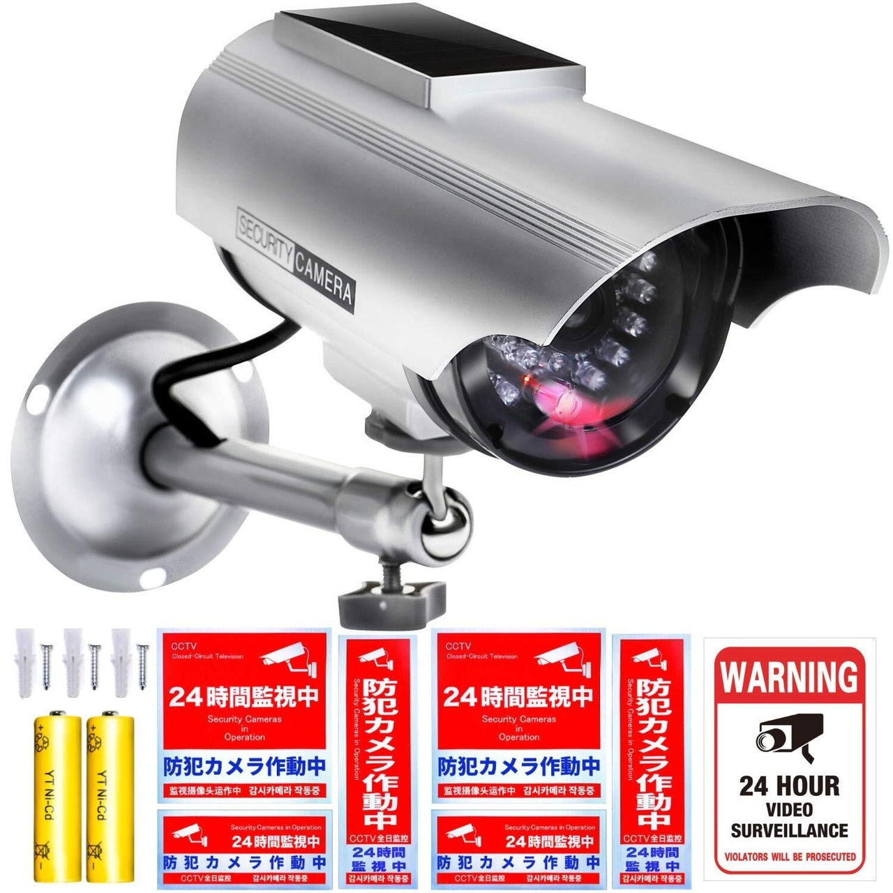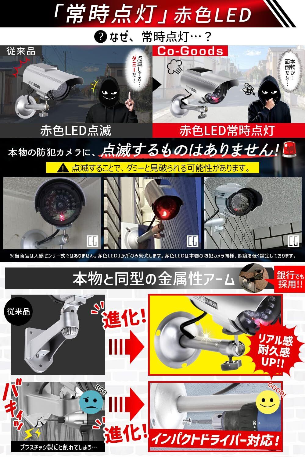 【在庫限り】【本物同型金属アーム/最新LEDでよりリアルに】防犯カメラ ダミー (手軽にできる防犯)【充電池/多言語防犯ステッカー付属】 防犯グッズ ダミーカメラ ソーラー 防犯ステッカー (対光強化/防水) 監視 ダミー 屋外 Co-Goods(コーグッズ)