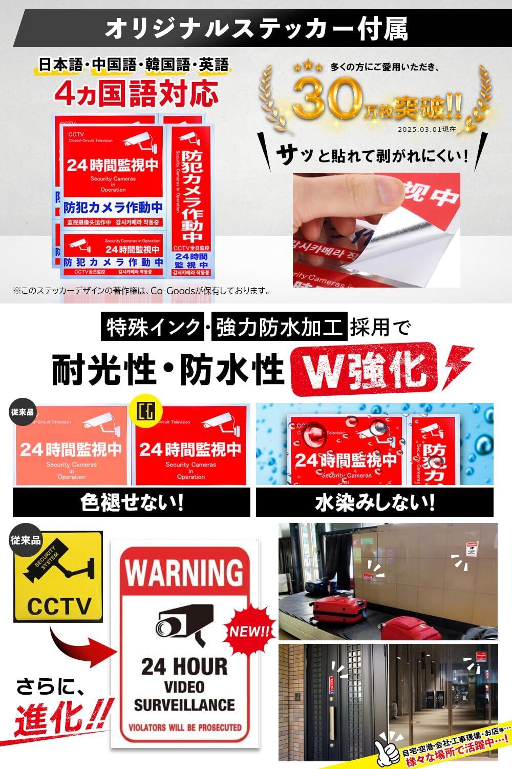 【本物同型金属アーム/最新LEDでよりリアルに】防犯カメラ ダミー (手軽にできる防犯)【充電池/多言語防犯ステッカー付属】 防犯グッズ ダミーカメラ ソーラー 防犯ステッカー (対光強化/防水) 監視 ダミー 屋外 Co-Goods(コーグッズ)