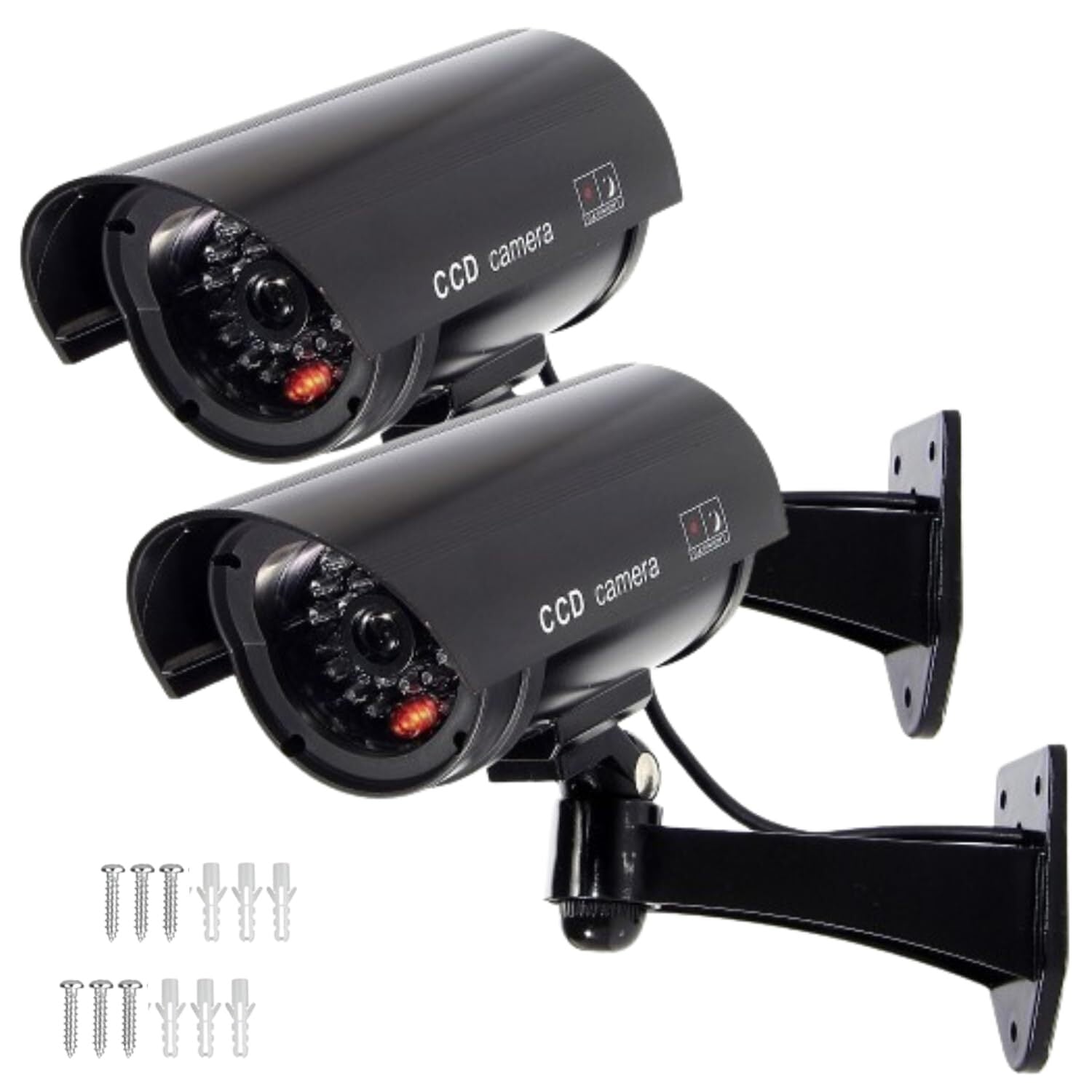 KeiSquare ダミーカメラ ダミー防犯カメラ フェイクカメラ 2個セット 角度調整可能 赤色 LEDライト 常時点滅 配線不要 乾電池式 (Black)