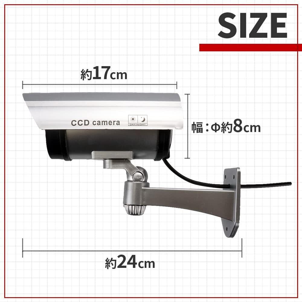 【セット内容】防犯ダミーカメラ×2個 ネジ×6本 アンカー×6本 ステッカー×2枚 【サイズ(約)】全長:24cm 【必要電池】単三電池×2本 ※電池は付属しません。【カラー】ブラック