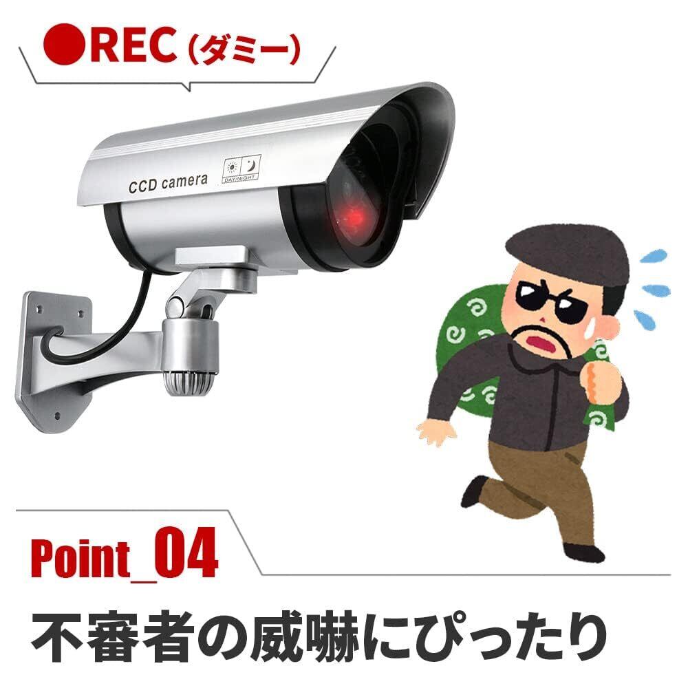 空き巣・万引き・いたずらの対策に!不審者を威嚇する防犯ダミーカメラです。LEDライトが点滅し、実際にカメラで撮影していると思わせる事で警告をかねた防犯対策に繋がります。