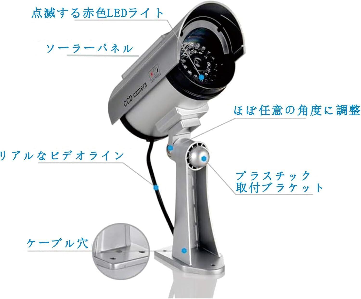 ■ 特徴:リアルなデザイン、常時点滅LED、簡単取り付け、配線不要、乾電池式