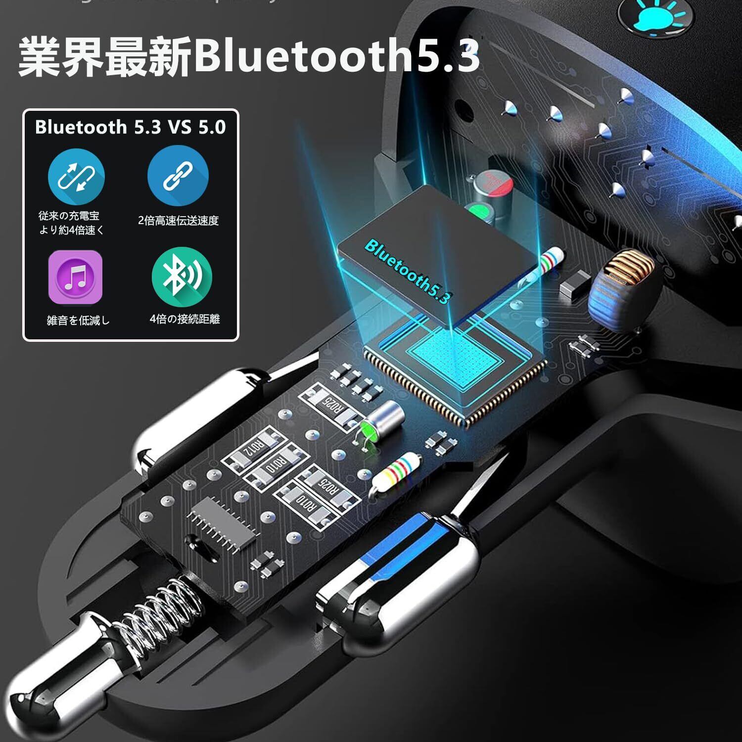【2025最新】2025新登場 FMトランスミッター 車載充電器 Bluetooth USB急速充電 Bluetooth/U-ディスク対応 2つの音楽再生モード 2ポート対応 12V-24V車対応 LEDディスプレイ ハンズフリー通話 バッテリー電圧測定