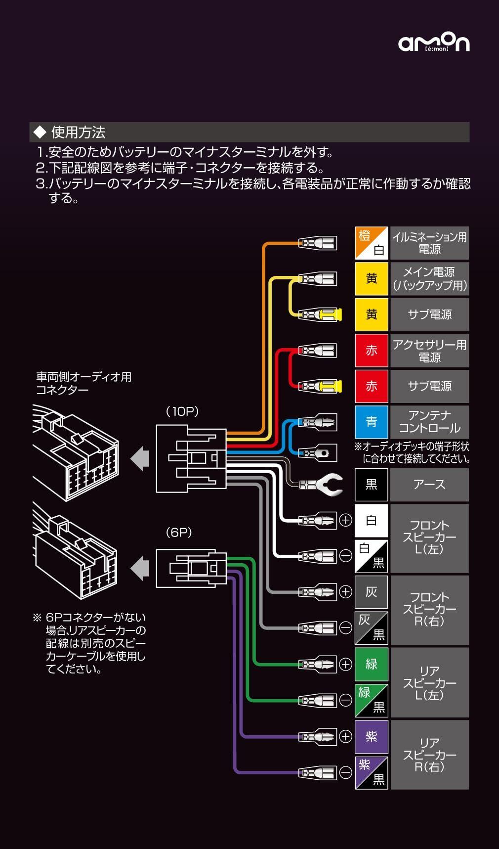 エーモン(amon) AODEA(オーディア) オーディオハーネス トヨタ・ダイハツ車用(10P・6P) カーナビゲーション・オーディオデッキの取り付けに アンテナコントロール用変換平型端子付き 2202