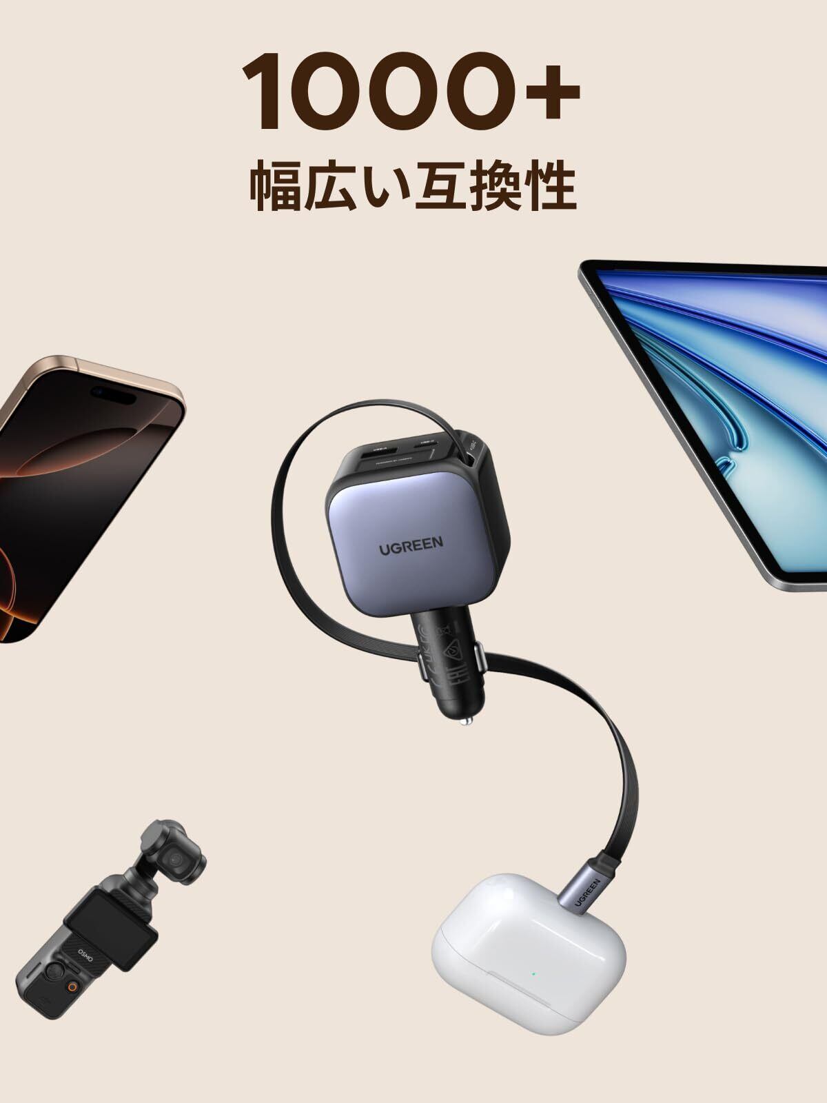 【PD30W急速充電】シガーソケットのトレンド?最大30Wで急速充電、スマホもタブレットも一気にフル充実!利便性と高性能を兼ね備えるUGREEN巻き取り式シガーソケットで、統一感ある車内空間を!