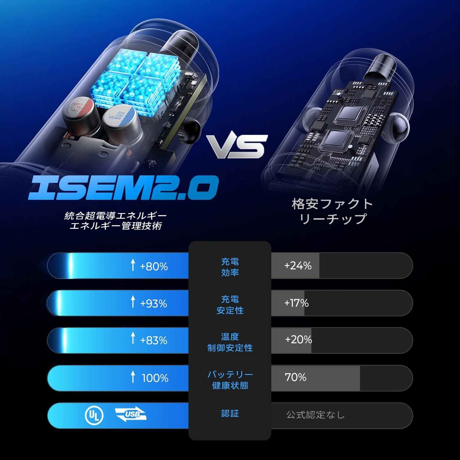 ■【超高速充電を実現!】PD36WとQC18Wの急速充電技術を搭載し、USB-CとUSB-Aのデュアルポートから2台を同時に充電可能です。なんと30分で50%の充電が実現し、忙しいあなたの生活をサポートします。