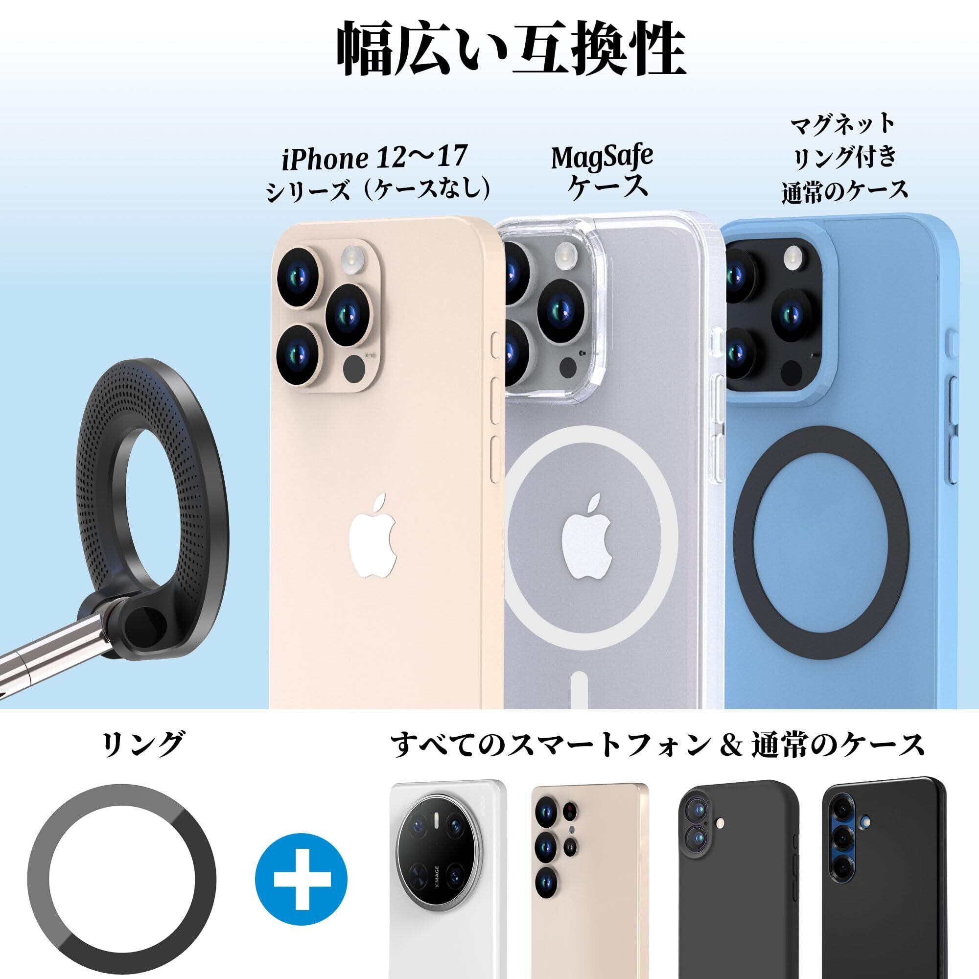 対応デバイス MagSafe付きスマートフォン:iphone12以降のシリーズ/MagSafeケース/マグネットリング付き通常のケース
