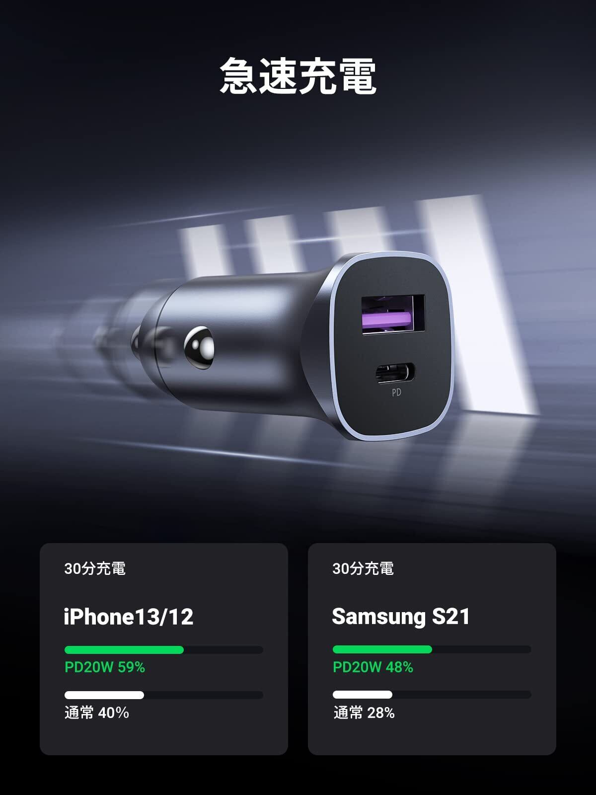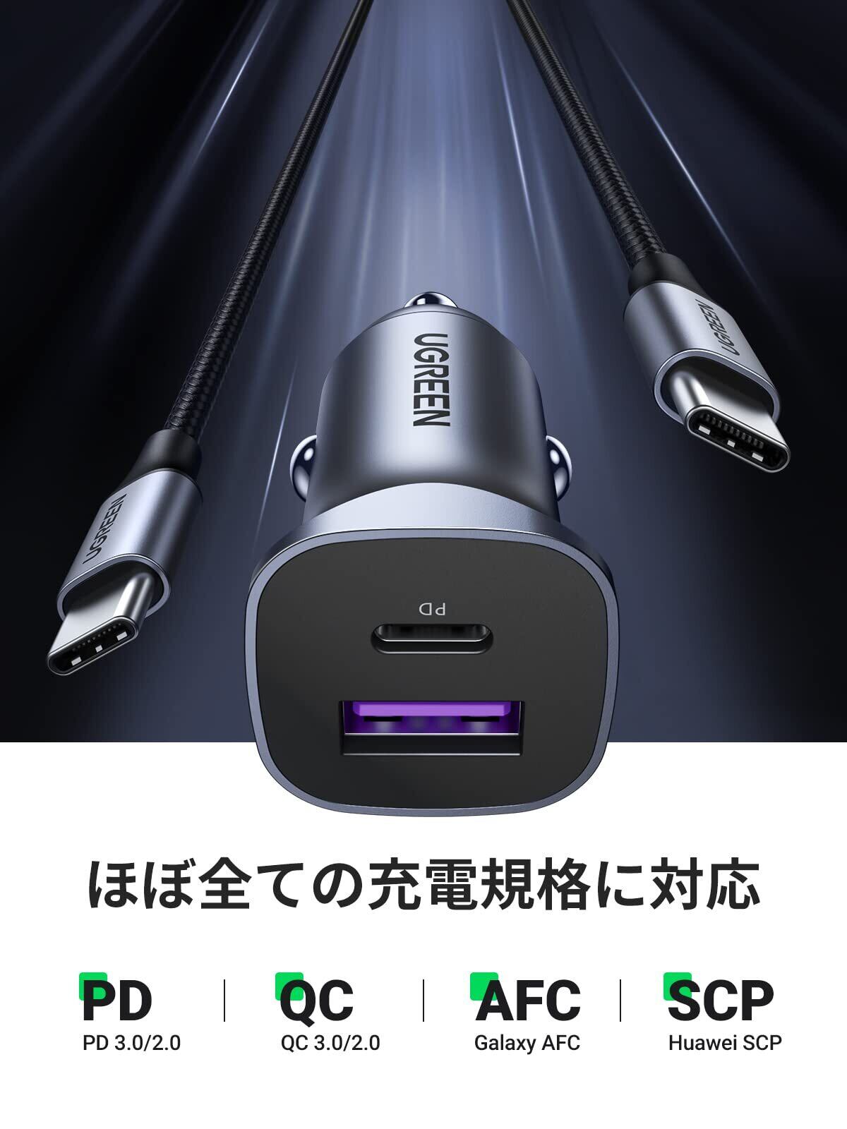 【特別価格】UGREEN カーチャージャー【52.5W/PD30W+SCP22.5W】