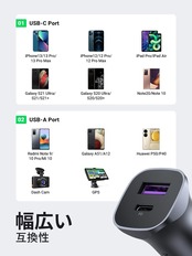 ■【幅広い車種対応で使いやすい!】UGREENカーチャージャーはDC12V-24Vの車両に対応しているため、ほとんどの車両で利用可能。特別な変換アダプターも不要で、運転中のコンパクトでスマートな充電が実現します。