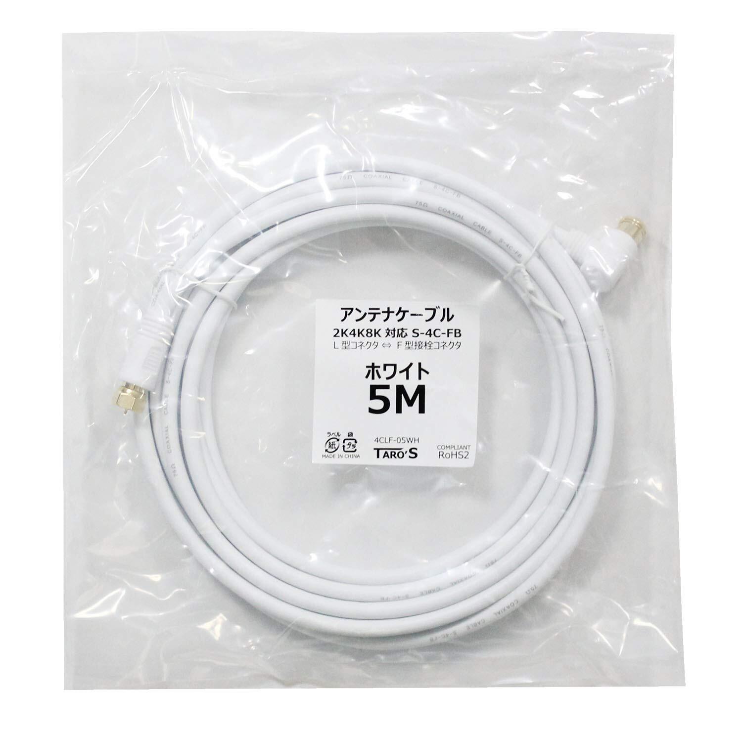 TARO'S アンテナケーブル 5M 4K8K放送(3224MHz)対応 S-4C-FB 4C同軸 地デジ・BS・CS・CATV放送対応 金メッキプラグ L型プラグ(差込式)⇔F型接栓プラグ(ネジ式) エコ簡易パッケージ タローズ ホワイト 4CLF-05WH