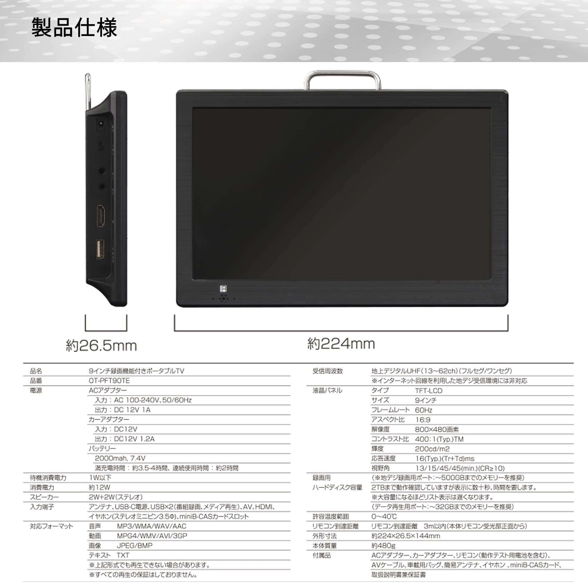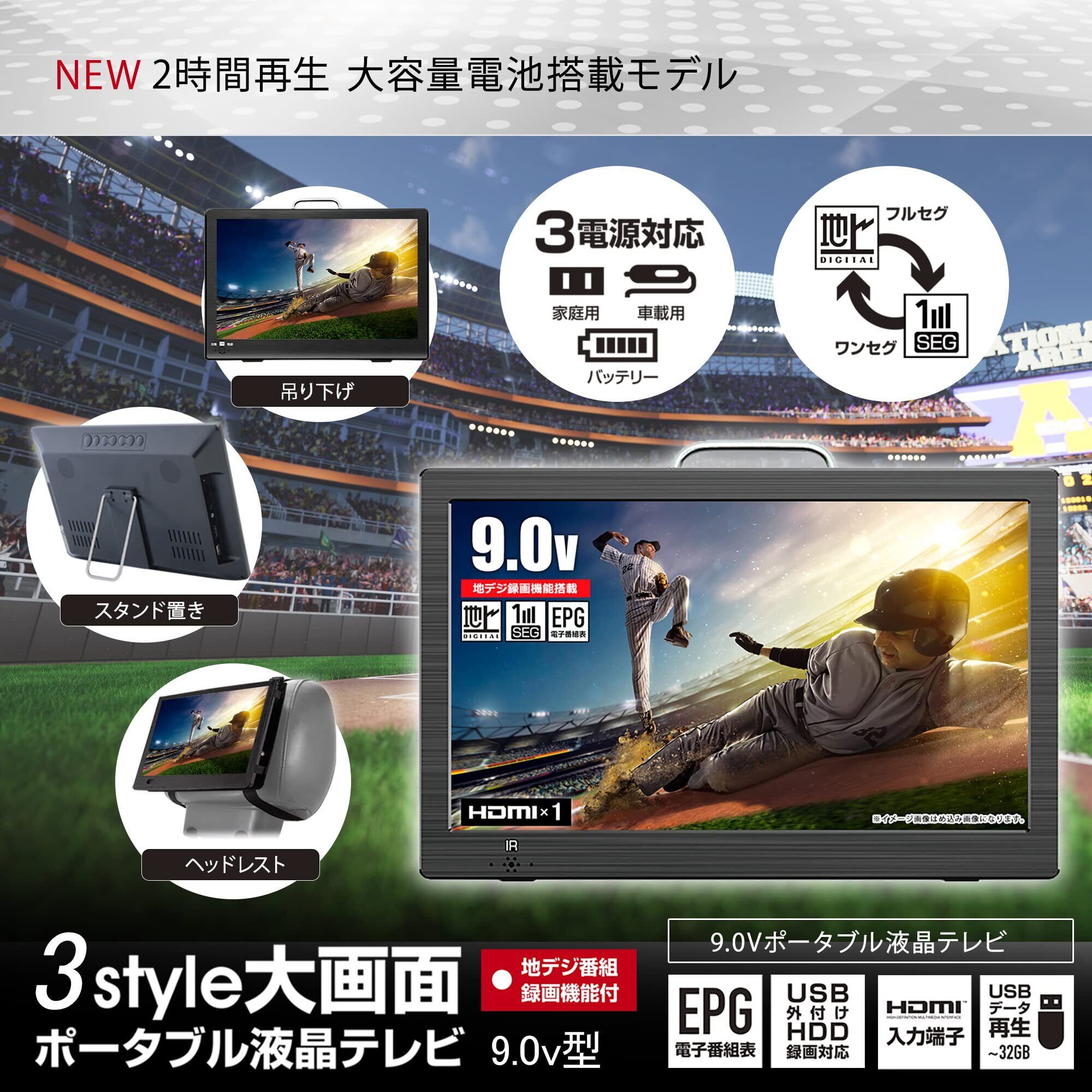東京Deco 9.0型 ポータブル 液晶テレビ 地デジ 9.0型 録画機能搭載 車載用バック [録画機能/HDMI搭載/3電源方式/3スタイル置き/フルセグワンワグ自動切替] フルセグ アンテナケーブル 壁掛け 地デジ ワンセグ ポータブル RCA TV 9 10 o000