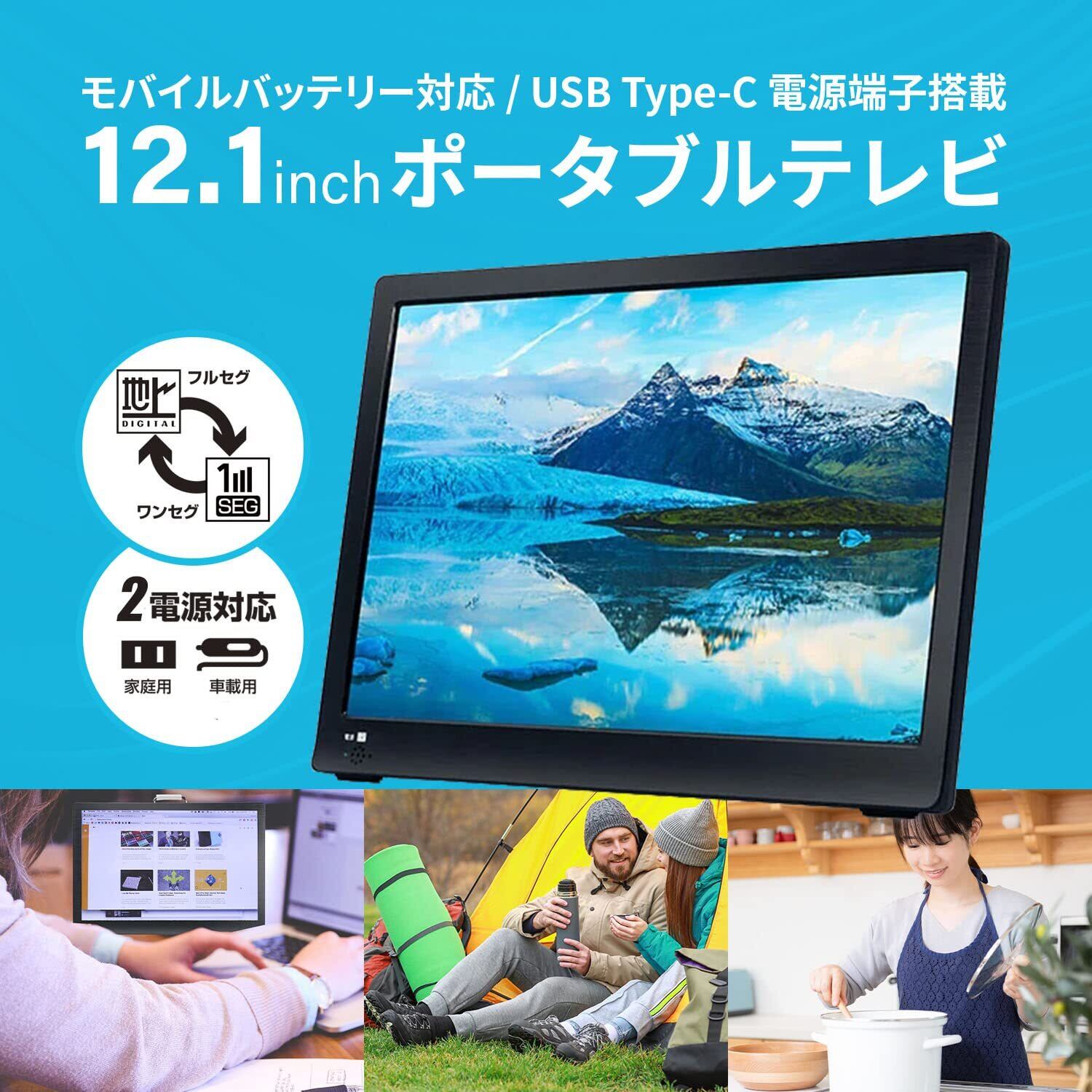 【特別価格】[東京Deco] 12V型 液晶テレビ ポータブル Type-C搭載 フルセグ 車載用バック付き [HDD 録画機能搭載] 1280×800 HDMI入力 3wayスタイル 自立・壁掛け・車載 USB/ 12.1インチ スピーカー内蔵 多彩な接続端子 Type-C電源対応 地デジ リビング 寝室 オフィス 屋外 アウトドア PCモニター o000