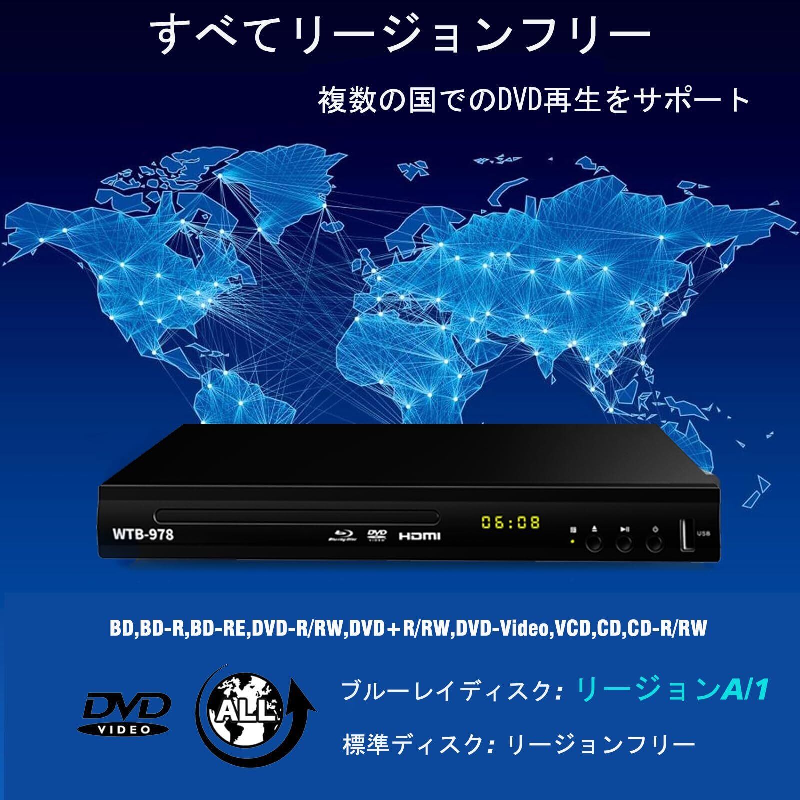 【在庫限り】ブルーレイDVDプレーヤー コンパクトデザイン DVD Blu-ray プレーヤー、フル HD 1080p DVD プレーヤー