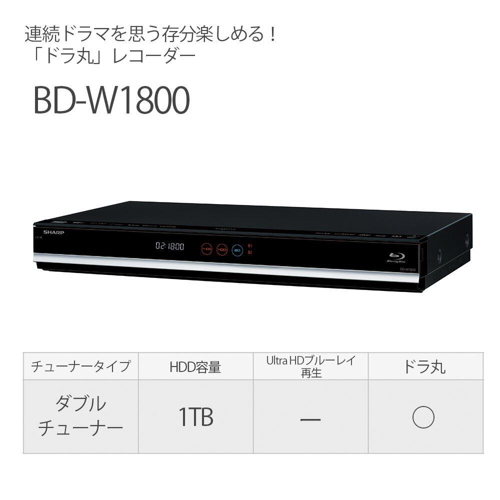 シャープ 1TB 2チューナー ブルーレイレコーダー AQUOS BD-W1800