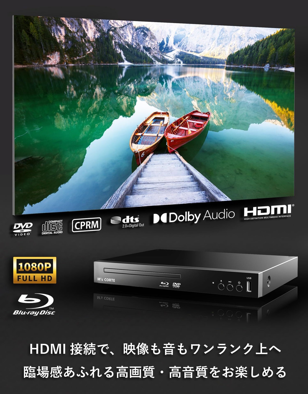 【2025最新】【新機種】ダイニチ電子 国内メーカー M's CORTE フルHD 1080P ブルーレイプレーヤー DVDプレーヤー HDMI出力 USB 入力 CPRM 対応 Blue-ray 対応 PSE技術基準適合 コンパクト MSB-SH810