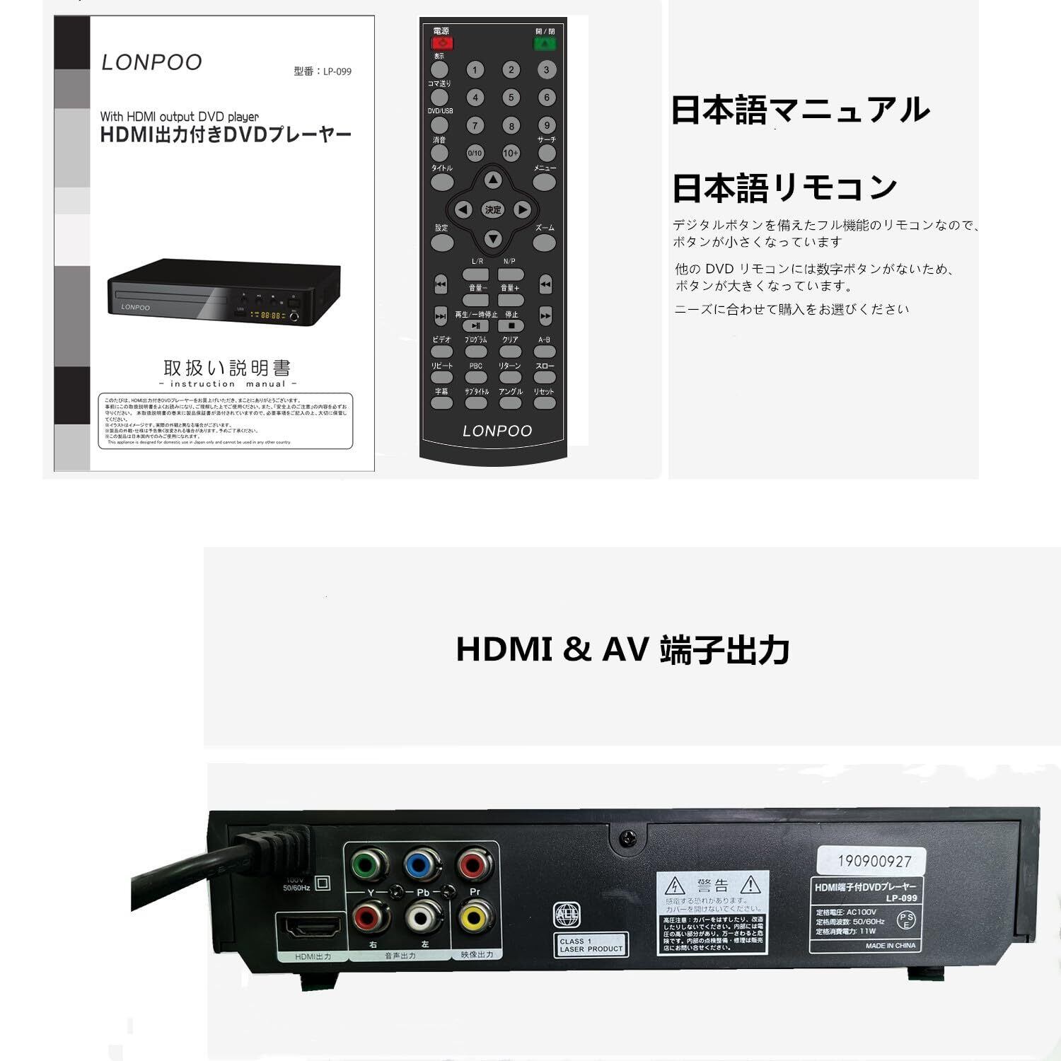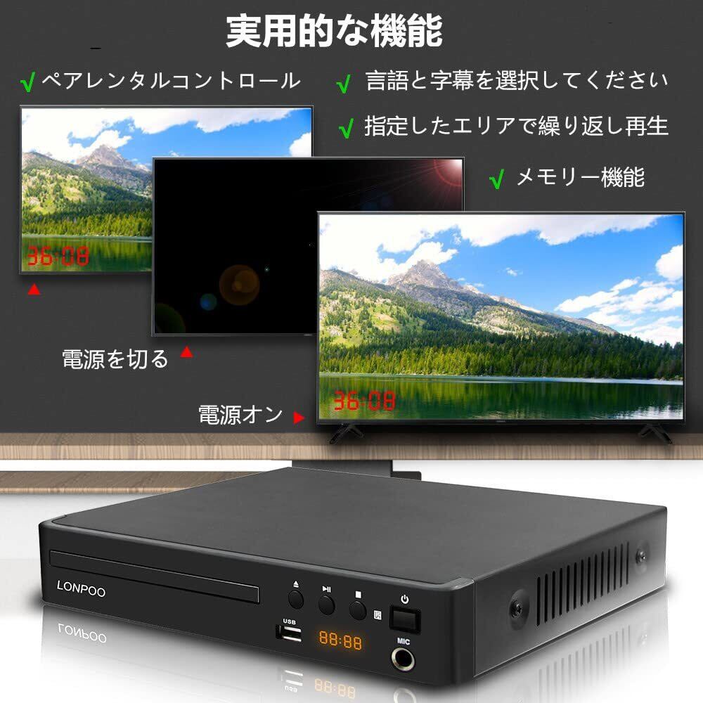 LONPOO DVDプレーヤー リージョンフリー HDMI/AV出力1080P CPRM再生可能 USB2.0入力 カラオケ用マイクジャック LEDディスプレイ PAL/NTSC対応 コンパクトDVDプレーヤーテレビ用 HDMI/AVケーブル付き フル機能のリモコンをサポート