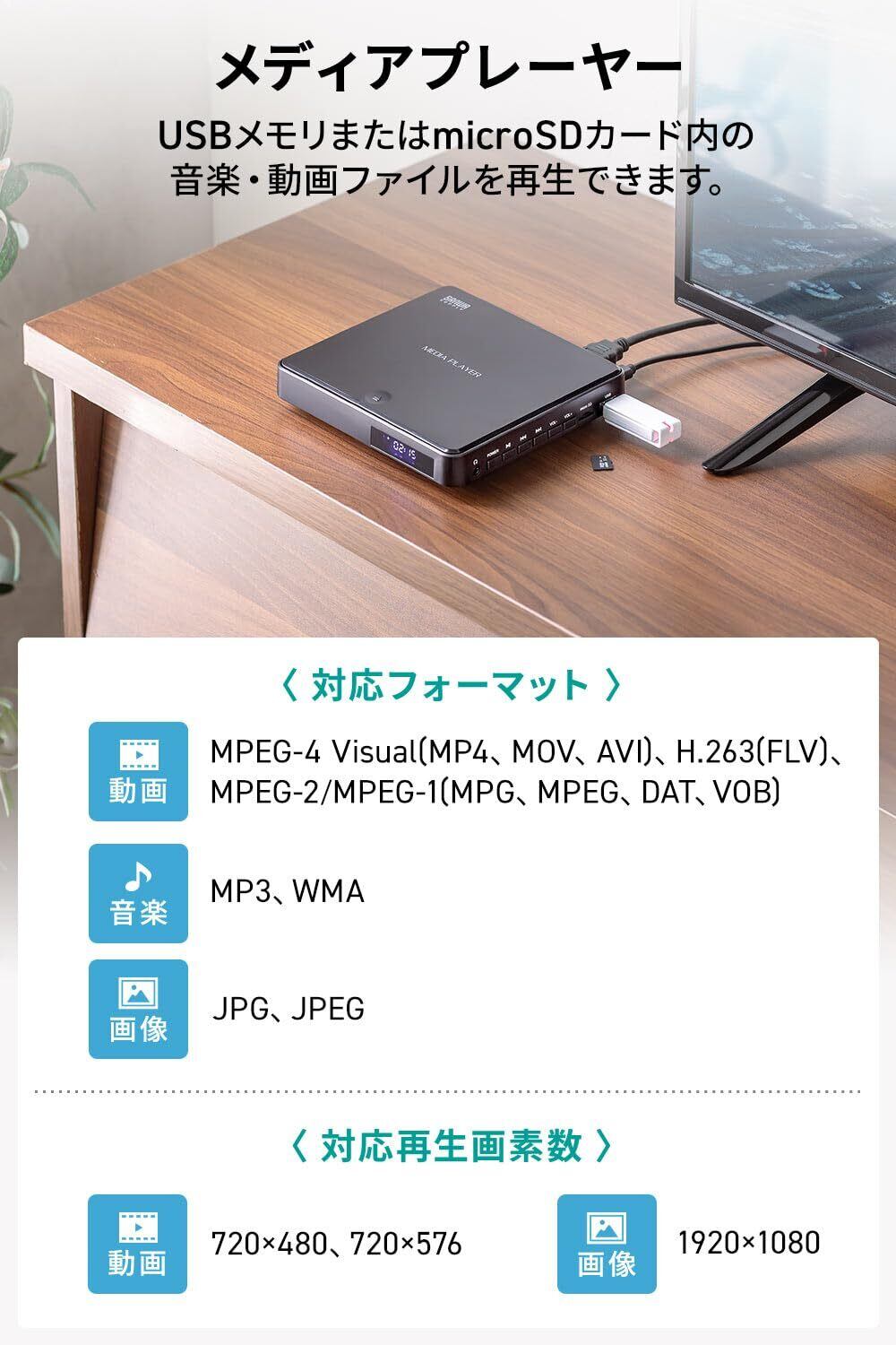 【数量限定】サンワダイレクト ミニDVDプレーヤー CD/DVD 再生専用 リージョンフリー CPRM対応 HDMI/RCA出力 USB給電 リモコン付き 400-MEDI052