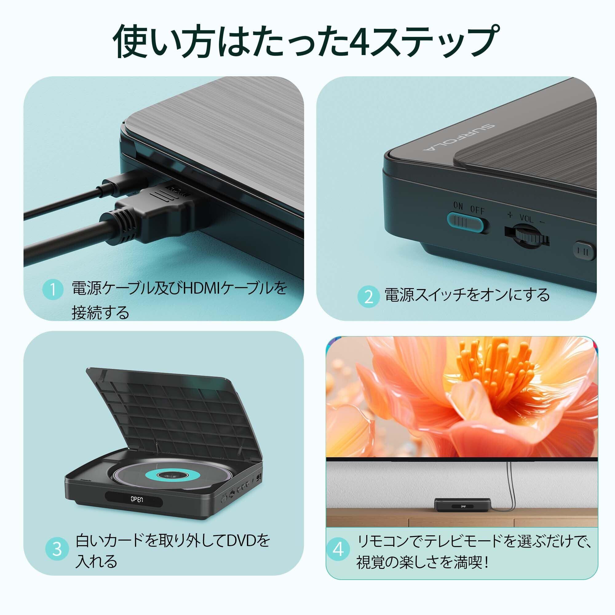 Surfola DVDプレーヤー DVD/CD再生 リージョンフリー HDMI接続 USBメモリー対応 イヤホン端子搭載 テレビ/プロジェクター接続可能、HDMIケーブル、リモコン、日本語説明書付き Blue-ray非対応