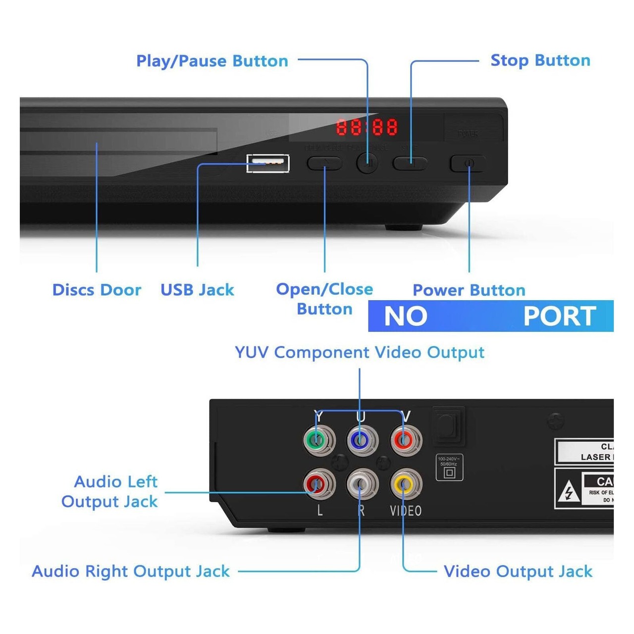 3.速度調整:高速再生と低速再生が可能な多機能ミニ DVD プレーヤーで、細部まで見逃せません。あらゆる部屋をミニ ホームシアターに変えます。