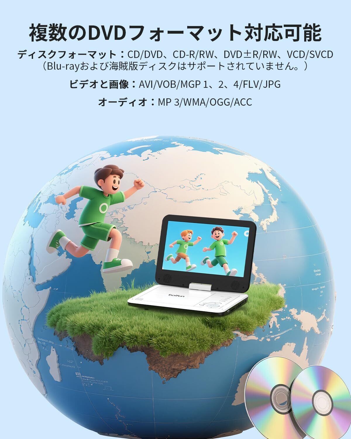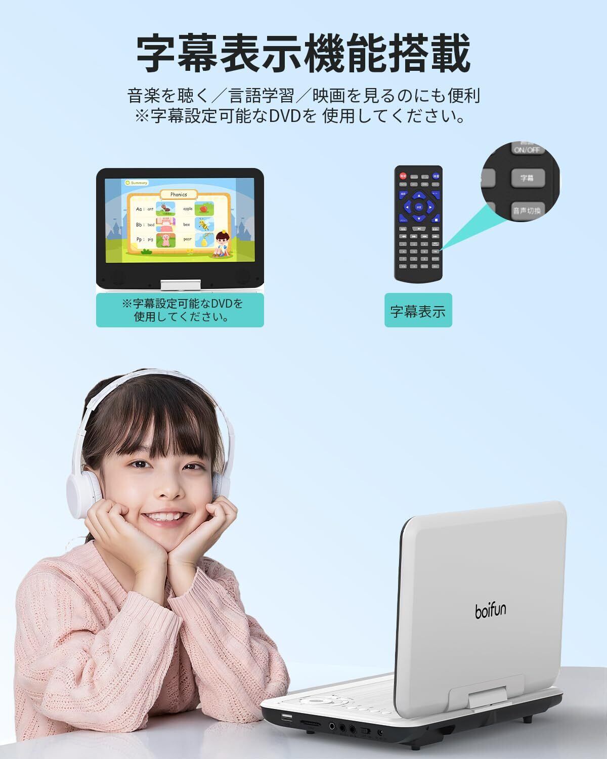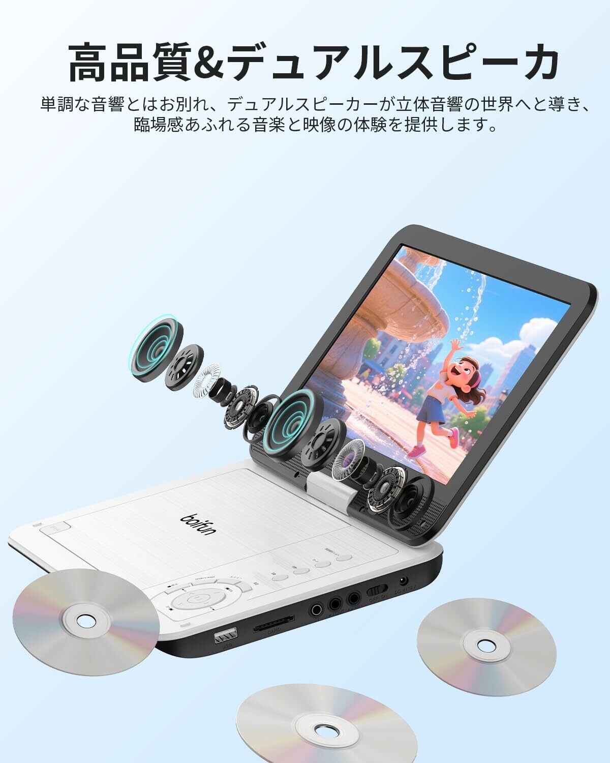 【新着商品】2025年 超軽量 BOIFUN ポータブルDVDプレーヤー 12.5型 ミニDVDプレーヤー 10.5インチ1024*600液晶 最大5時間再生 リージョンフリー CPRM対応 レジューム機能 リモコン付き