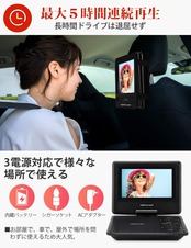 ❖【子どもを連れてのドライブは楽しい】大容量バッテリー内蔵で、最大5時間再生が可能、長時間続けて見たいときにも安心。家庭用のAC・車載用のDC・バッテリーと3WAY電源に対応しており、様々なシーンで用途に応じて使いやすいアイテム。