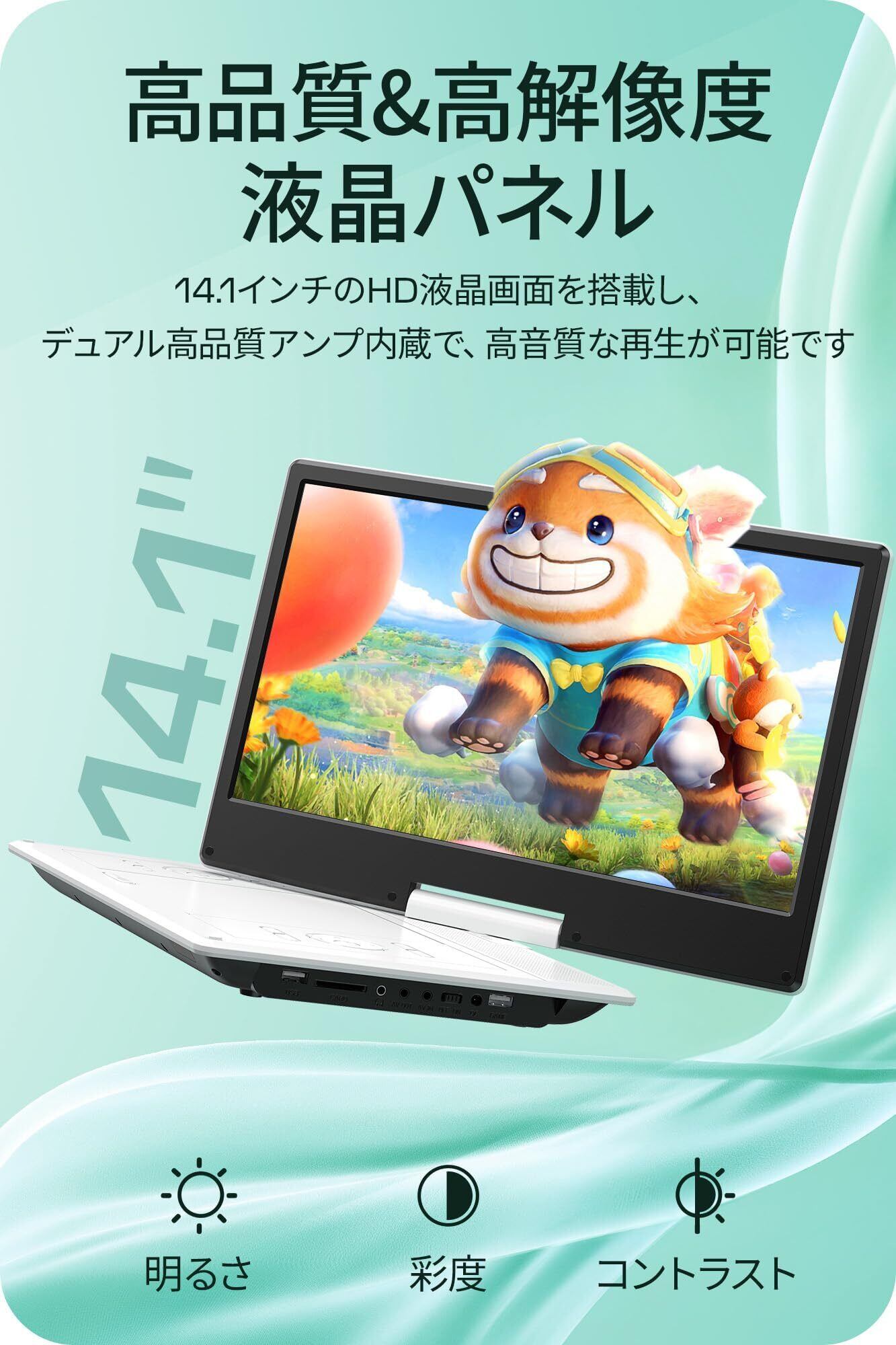 Surfola ポータブルDVDプレーヤー 16.9型 CDプレーヤー 14.1インチ液晶 デュアルアンプ内蔵 4〜6時間再生 リージョンフリー USB/SDカードに対応 AV入出力 TV同期可能 ラストメモリー機能【ブルーレイ非対応】
