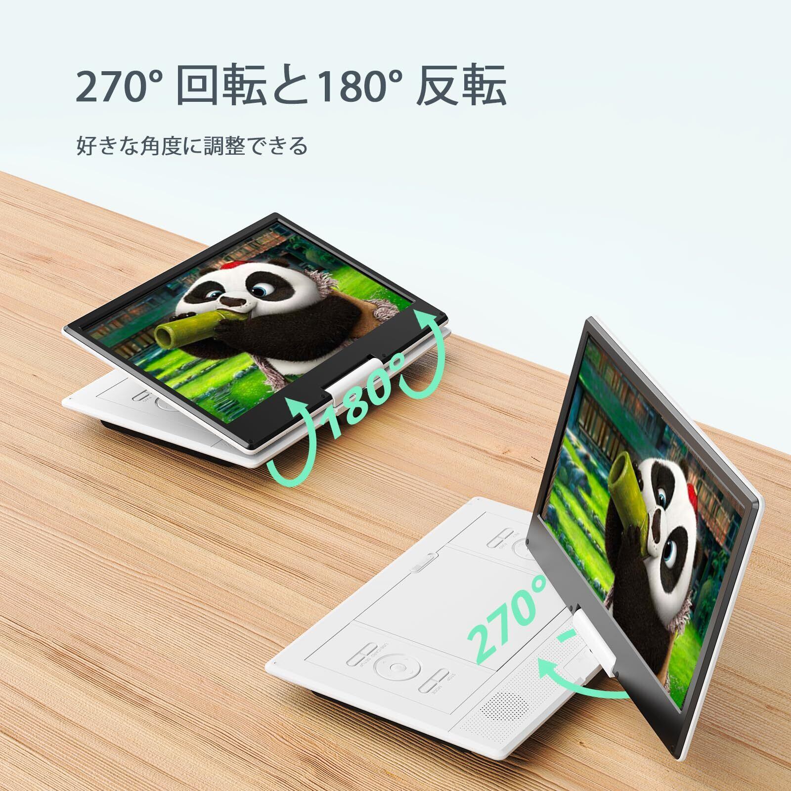 ■【大迫力の映像体験!】YOTONポータブルDVDプレーヤーは、14.1インチのHD液晶を搭載し、映画やアニメを鮮やかな画質で楽しむことができます。270°回転&180°反転に対応することで、どんな角度からも視聴しやすく、家族や友人と共有するのにも最適です。