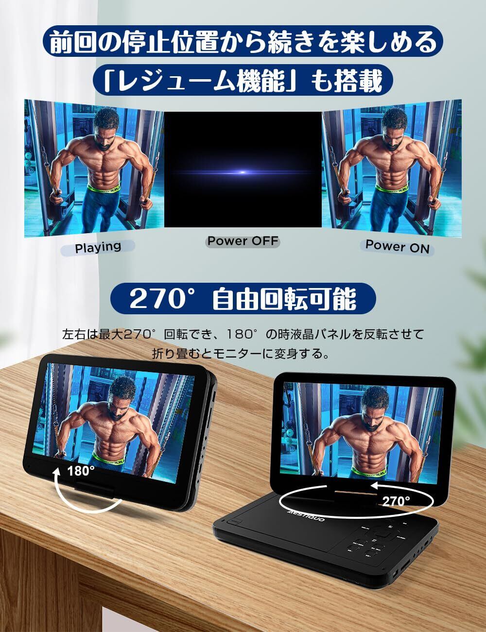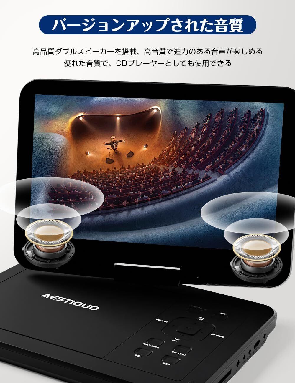 【2025最新】【2025年新機種】AESTIQUO ポータブルDVDプレーヤー 12.5型 dvdプレーヤー 10.5インチ液晶 5時間連続再生 リージョンフリー CPRM対応 レジューム機能 cdプレーヤー 270度画面回転 TV同期可能 SDカード/USBに対応 操作簡単 軽量 持ち運び 旅行/車内/病院 ブルーレイ非対応