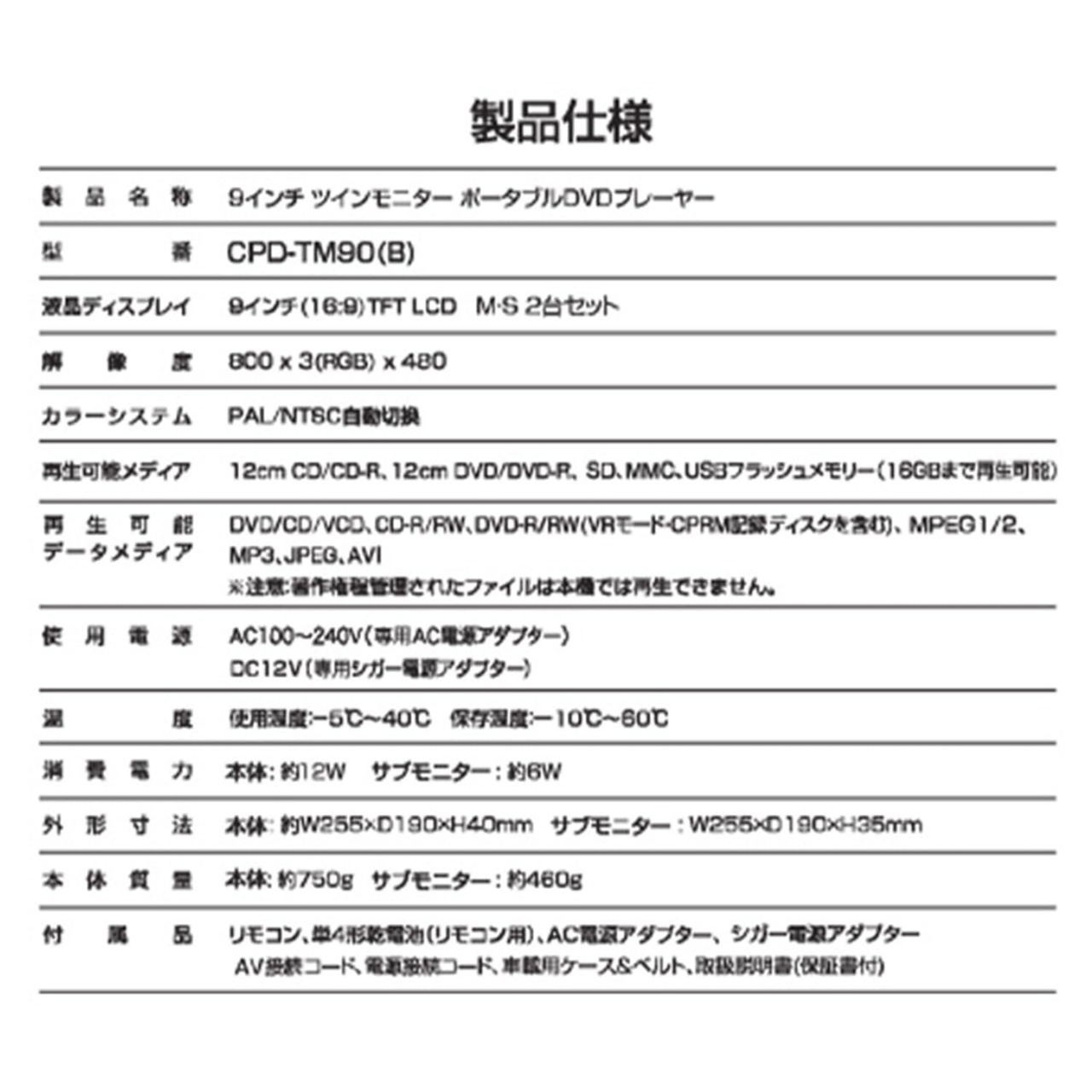 [山善] キュリオム ポータブルDVDプレーヤー CPRM対応 9インチ(16:9) ツインモニター AC/DC対応 TFT液晶 DVD CPD-TM90(B)