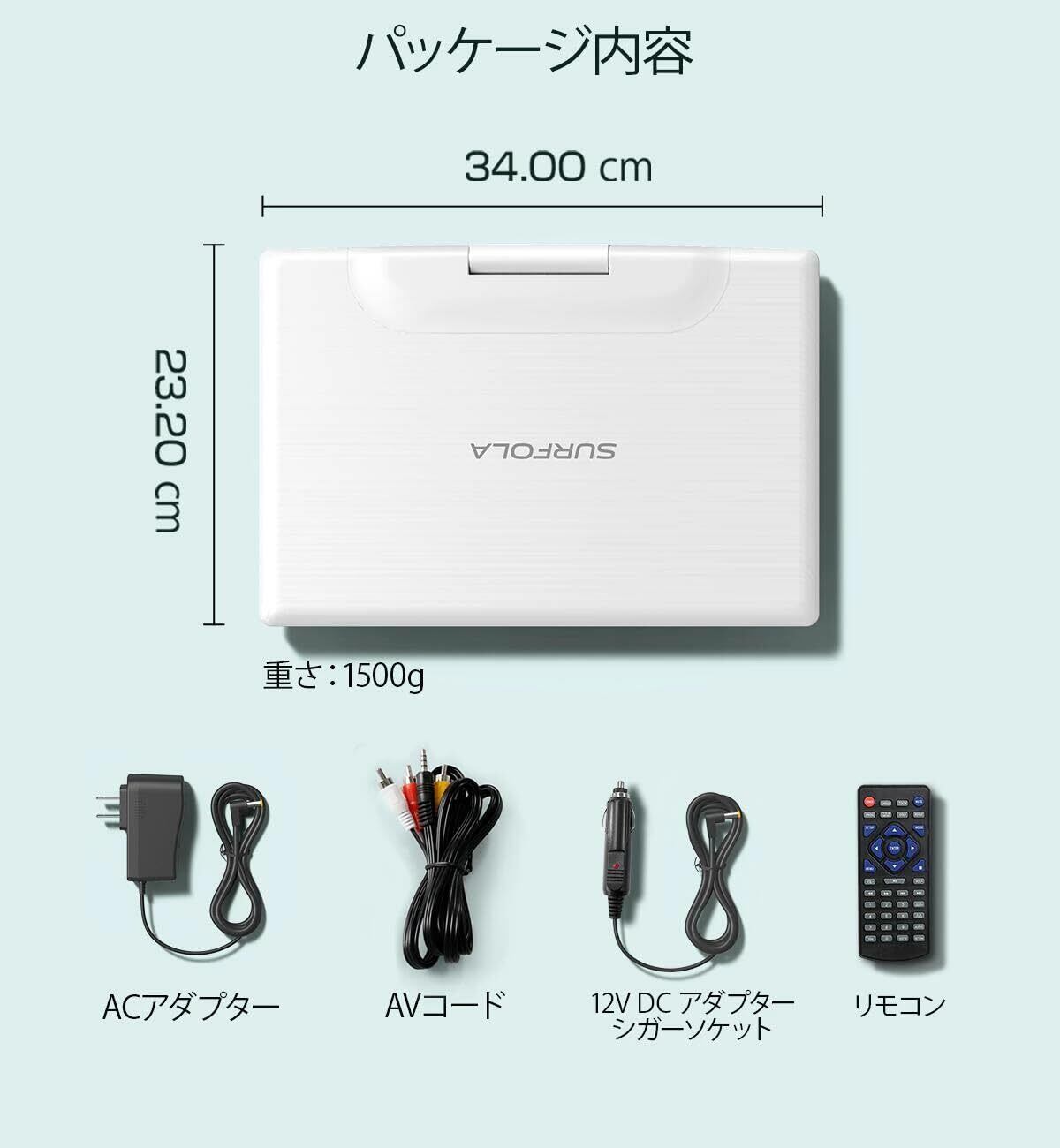 「簡単操作」本体ボタン、リモコンは日本語表示で、初めて使う方でも簡単に操作できます。また、Surfola ポータブルDVDプレーヤーは便利なハンドル付きのDVDパッケージで提供されており、お子様への教育的アニメ、高齢者への懐かしい映画、友人との旅行やアウトドアにぴったりなギフトとしても最適です。幅広い方々に喜ばれる商品です。