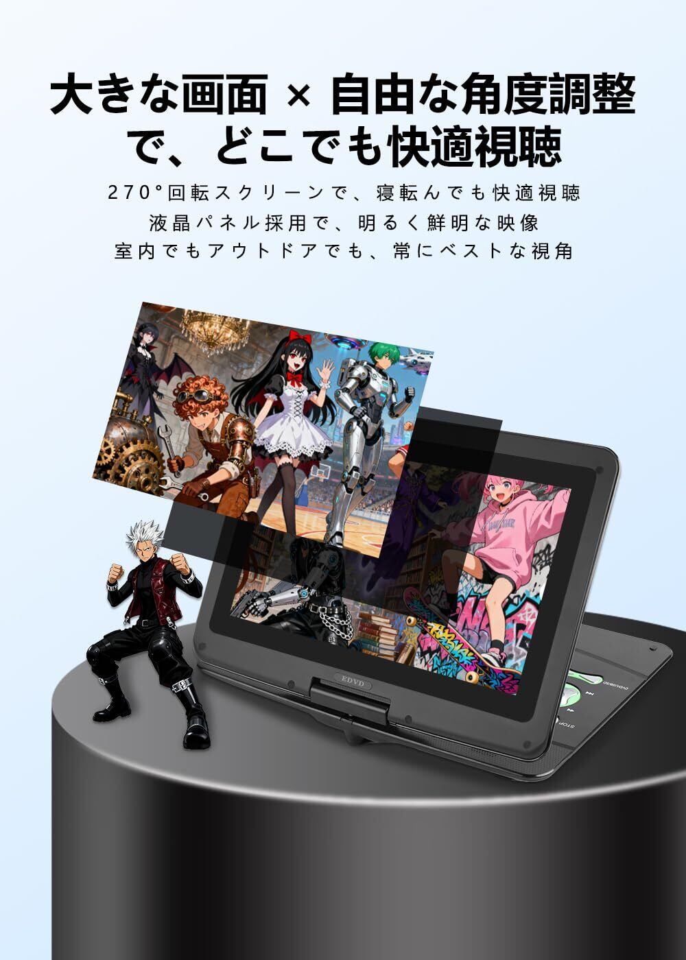 Xelyra ポータブルDVDプレーヤー 13.3インチ 大画面 回転式 6時間再生 リージョンフリー USB/SD対応 ゲーム付き 多機能 小型 軽量 リモコン付