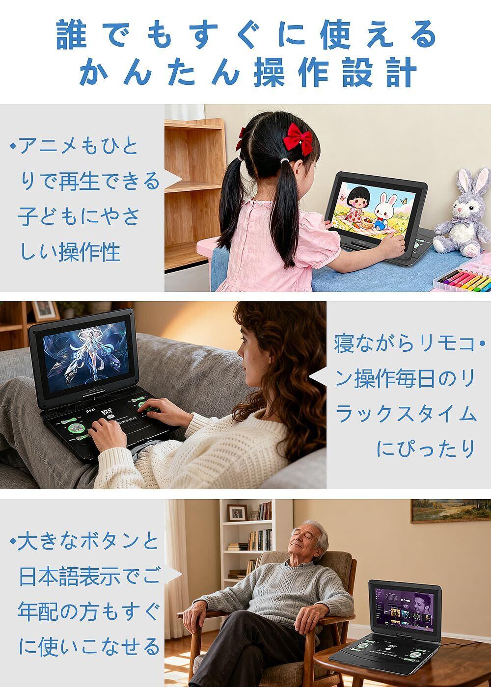 XelyraのポータブルDVDプレーヤーで、映画や音楽、ゲームを通じて、いつでも楽しめるエンターテイメント体験をお届けします!