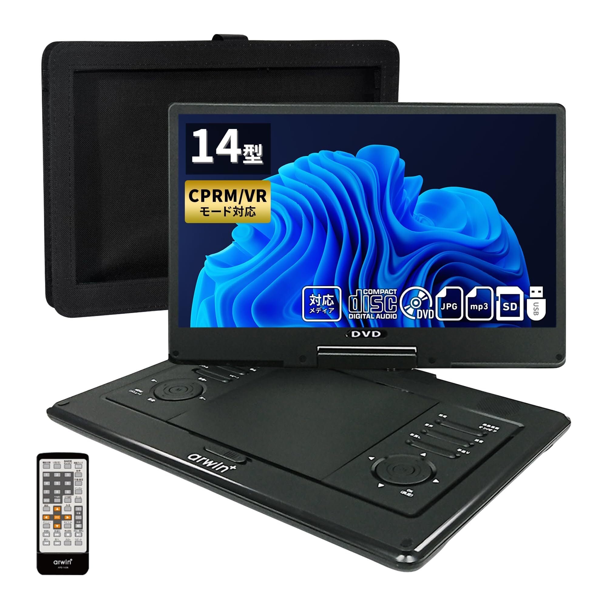 [東京Deco] 14型 ポータブルDVDプレーヤー DVD/CD再生 ハイビジョン CPRM/SD/AV/USB対応 音楽CDコピー機能 3電源方式(家庭用/車載用/内蔵電源) 270度回転 3wayスタイル スタンド/壁掛け/車載バック 約2.5時間連続再生 14インチ v 車載用バッグ付属 g004