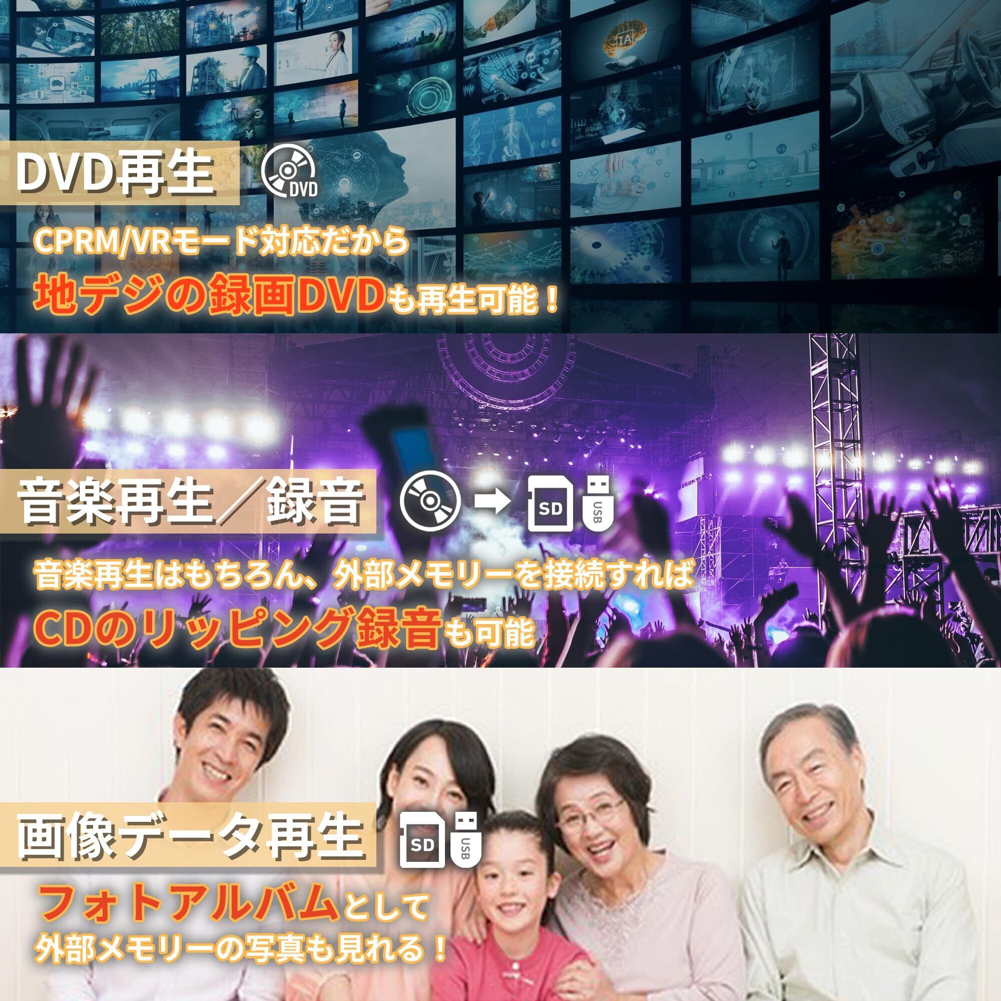[対応フォーマット&メディア]DVD:Video/-R/-RW(CPRM/VRモード含む),CD:DA*/-R/-RW,SD,microSD,SDHC,microSDHC,USB,MP3,JPEG