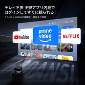 【公式アプリ搭載ですぐに視聴可能】MX1家庭用プロジェクターは、Netflix、Prime Video、YouTubeなどの公式認証アプリを内蔵しているため、面倒な設定なしで、電源を入れるだけですぐに大画面でコンテンツを楽しめます。さらに、Disney+、Huluといった人気のストリーミングサービスも手軽にダウンロード可能。外部デバイスを接続する手間なく、映画やアニメをすぐに視聴できるのが魅力です。アカウントログインや日本語字幕の切り替えにも対応しており、操作画面は非常にシンプルでスムーズ。サードパーティ製OSにありがちな強制終了やアップデート不可といった心配がなく、安定した快適な視聴体験を長く提供します。また、「テレビ番組も見たい」という方には、地上波チューナー内蔵のテレビボックス(別売)をHDMI端子に接続するだけで、通常のテレビ視聴も可能です。システムの定期アップデートにも対応しているため、常に最新の状態で安心してお使いいただけます。