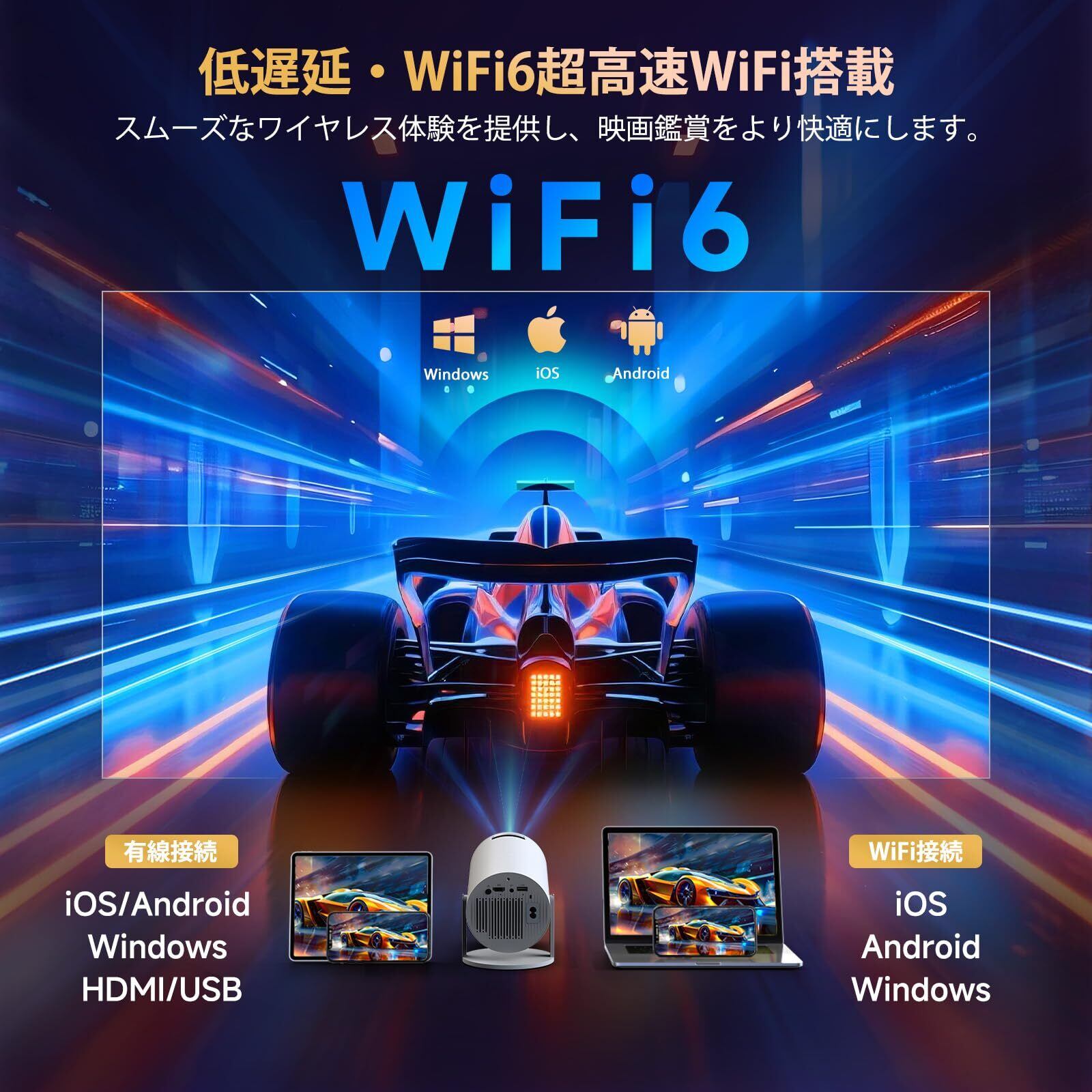 【超高速5G&2.4G・Wi-Fi 6・Bluetooth5.3対応】小型プロジェクターは、超高速5G&2.4Gと先進のWi-Fi6技術を搭載しており、遅延を最大60%削減されて、より高速で安定したインターネット接続を実現します。Wi-Fi経由でiOS、AndroidおよびWindowsデバイスを素早く接続でき、超スムーズで遅延のないオンラインゲーム、映画鑑賞、ビデオ学習体験を簡単に楽しむことができます。また、Bluetooth5.3も搭載し、ご愛用のスピーカーやワイヤレスイヤホンやから音声を流すことができ、迫力ある映像をこだわりの音響環境で映画館のような雰囲気を楽しむことができます。(ご注意:SONYのBluetoothスピーカーとの互換性はありません。)