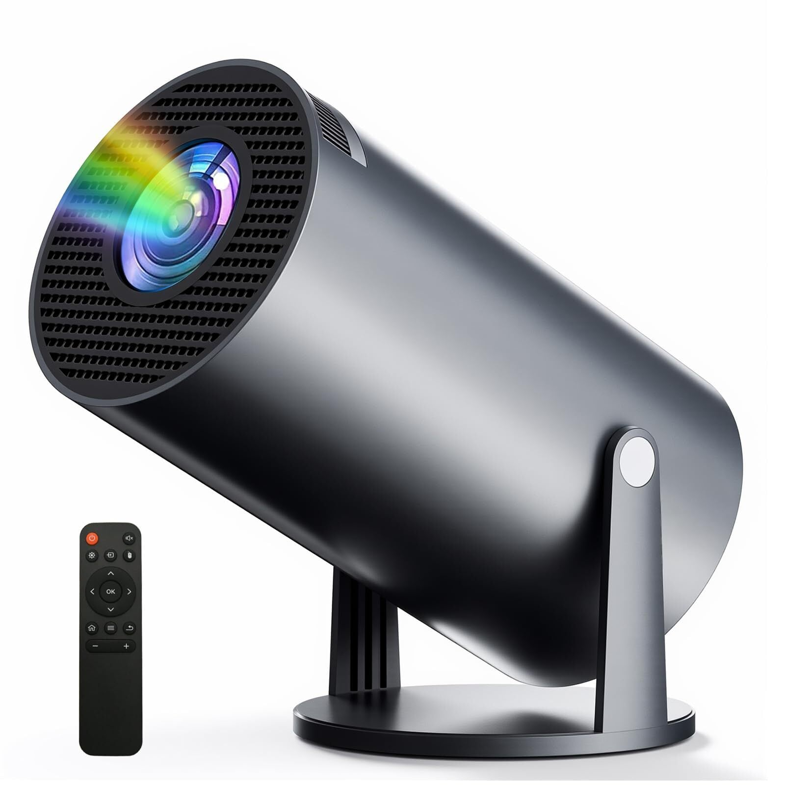 プロジェクター 家庭用【最新進化Android TV搭載!・4K対応・270°回転】プロジェクター 小型 軽量 天井投影 Wi-Fi6 接続Bluetooth5.4 リアル1080P高輝度 内蔵HiFiスピーカー 自動台形補正 短距離投影 ホームプロジェクター スタンド一体型 iOS & Androidスマホ/パソコン/DVD/PS機/Switch/などに対応 (グレー)