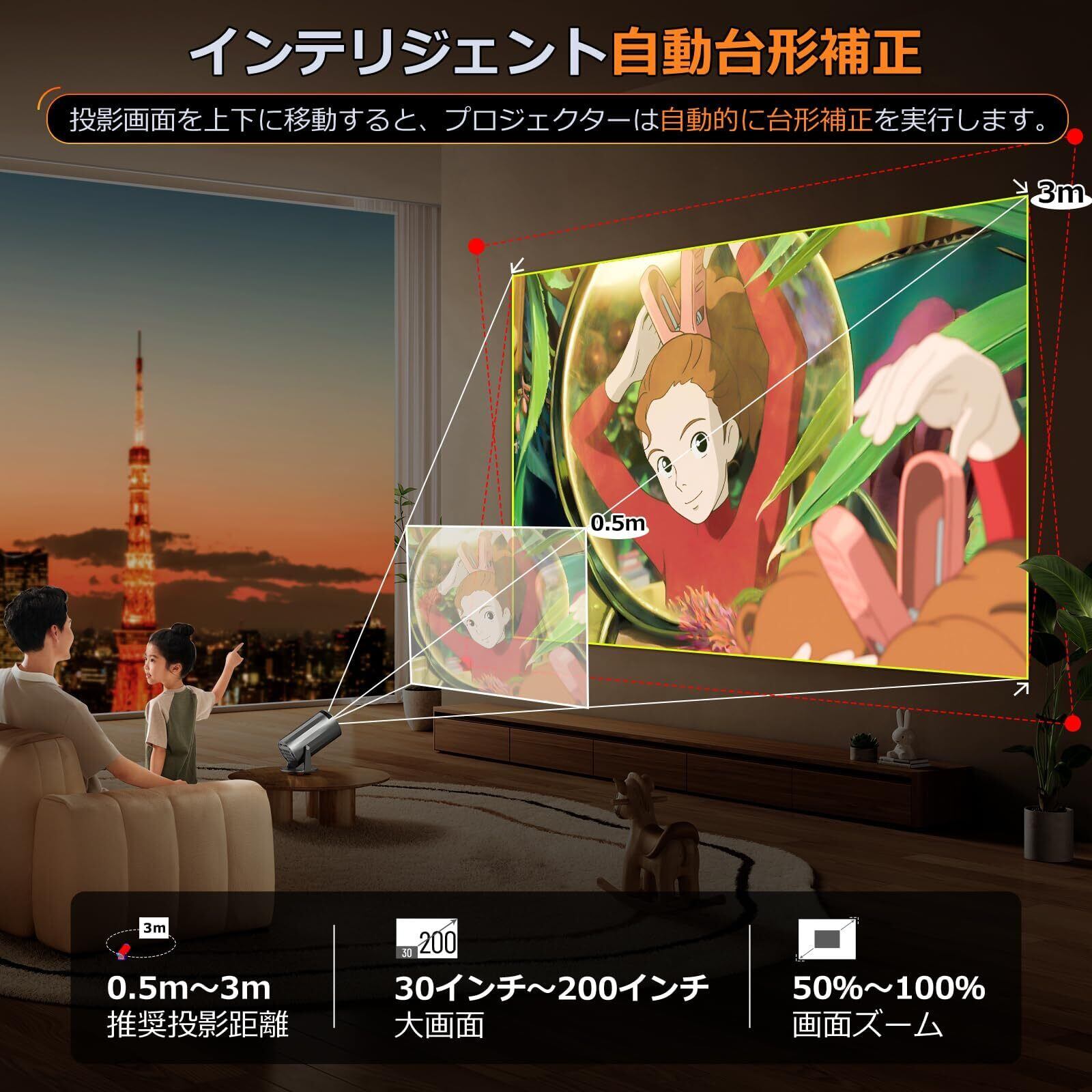 【Android TV12.0搭載・大画面・短距離投影】このホームプロジェクターはAndroid TV 12.0を搭載し、Prime Video、YouTube、Netflix、Disney+、Hulu、TVerなどの主要プラットフォームにアクセス可能です。8,000以上のアプリから選び、60万本を超える映画やテレビ番組をお楽しみいただけます。Google PlayストアやApp Storeからさらにアプリをダウンロードできるため、多様なエンターテイメントニーズに対応します。0.5~3メートルの短焦点投影により、狭い空間でも30~200インチの大画面を投影可能です。手軽にホームシアターを構築できます。システムは日本語、英語、中国語を含む51言語に対応し、全世界のユーザーの使用習慣に適合しています。詳細な日本語取扱説明書が付属するため、初心者でもすぐに操作を習得し、安心してご利用いただけます。