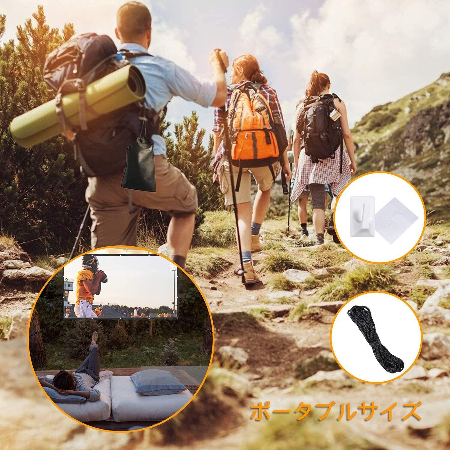 【取り付けやすい】軽量なスクリーンの重さはわずか0.44 kg。16個の接着フックと12メートルの長さのロープは、超楽な取り付けと解体体験を提供しています。室内でも屋外でも、ワンスクリーンでOK。