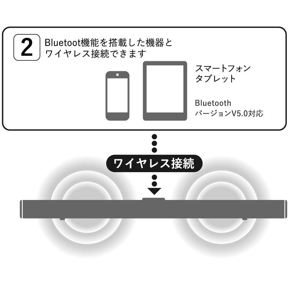 ■【迫力のサウンドを実現する2.1ch構成!】このサウンドバーは、サブウーファーを内蔵し、最大出力110Wを誇るパワフルな再生を実現します。映画や音楽を高音質で楽しむための完璧な選択肢です!