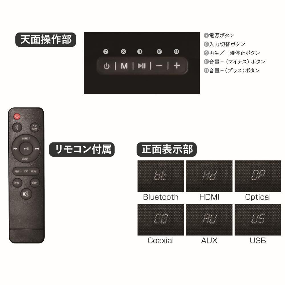 【在庫限り】2.1ch サブウーファー 内蔵 サウンドバー スピーカー 最大出力110W [25W×2・15W×4] 幅約92cm Bluetooth 5.0/HDMI/AUX/OPTICAL/COAXIAL/USB